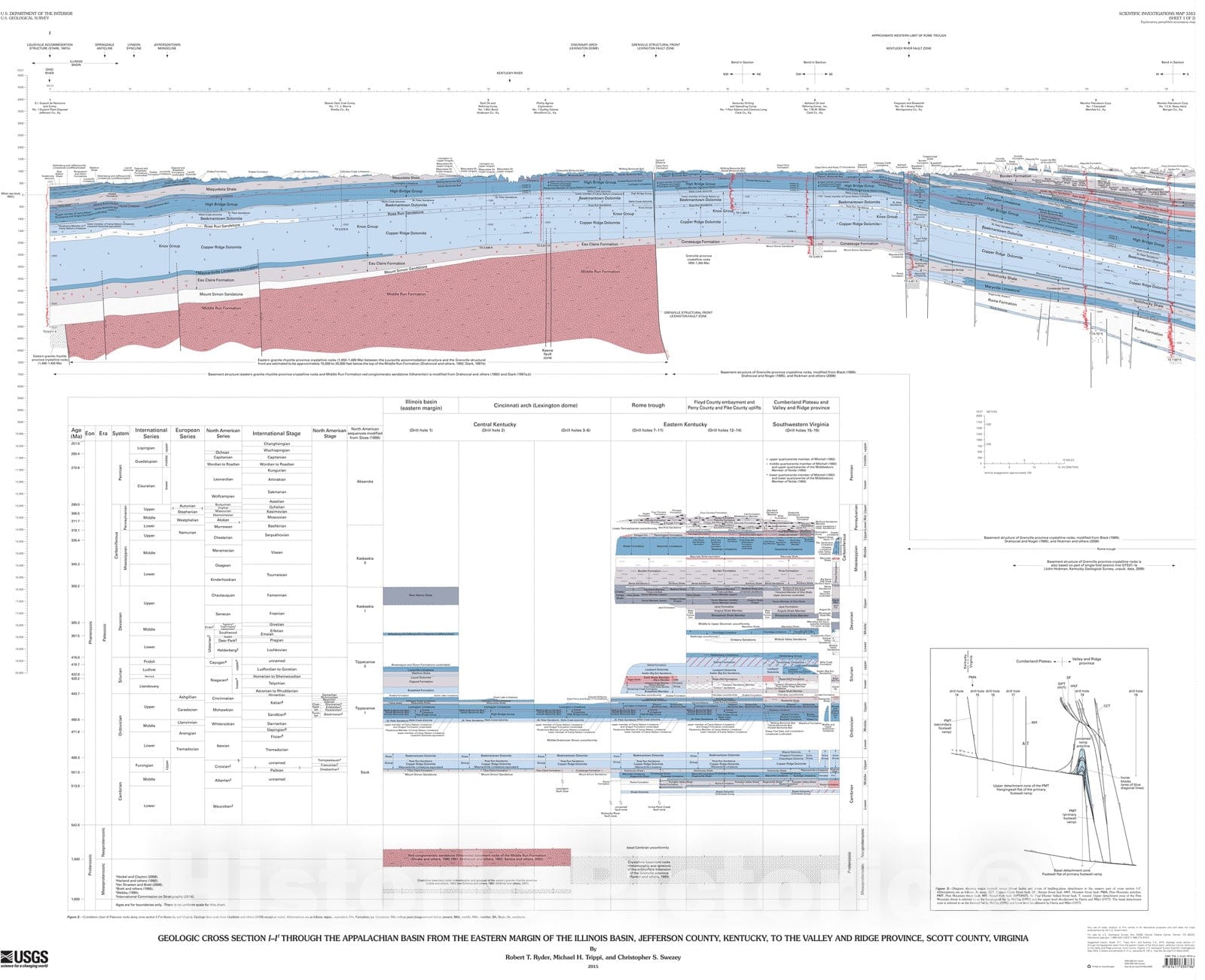 Geologic cross section I-I' through the Appalachian basin from the eastern margin of the Illinois basin, Jefferson County, Kentucky, to the Valley and Ridge province, Scott County, Virginia