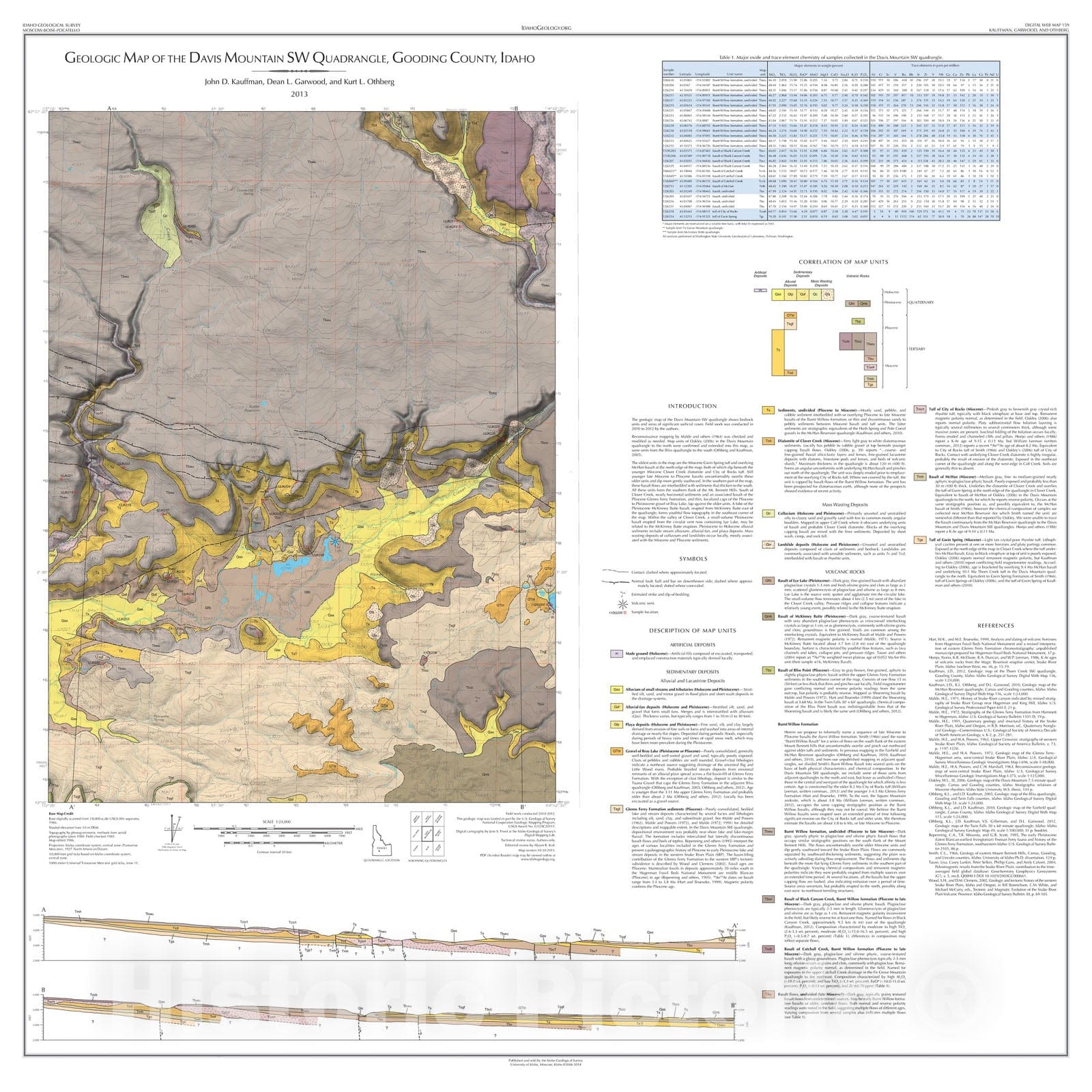 Map : Geologic Map of the Davis Mountain SW Quadrangle, Gooding County, Idaho, 2013 Cartography Wall Art :