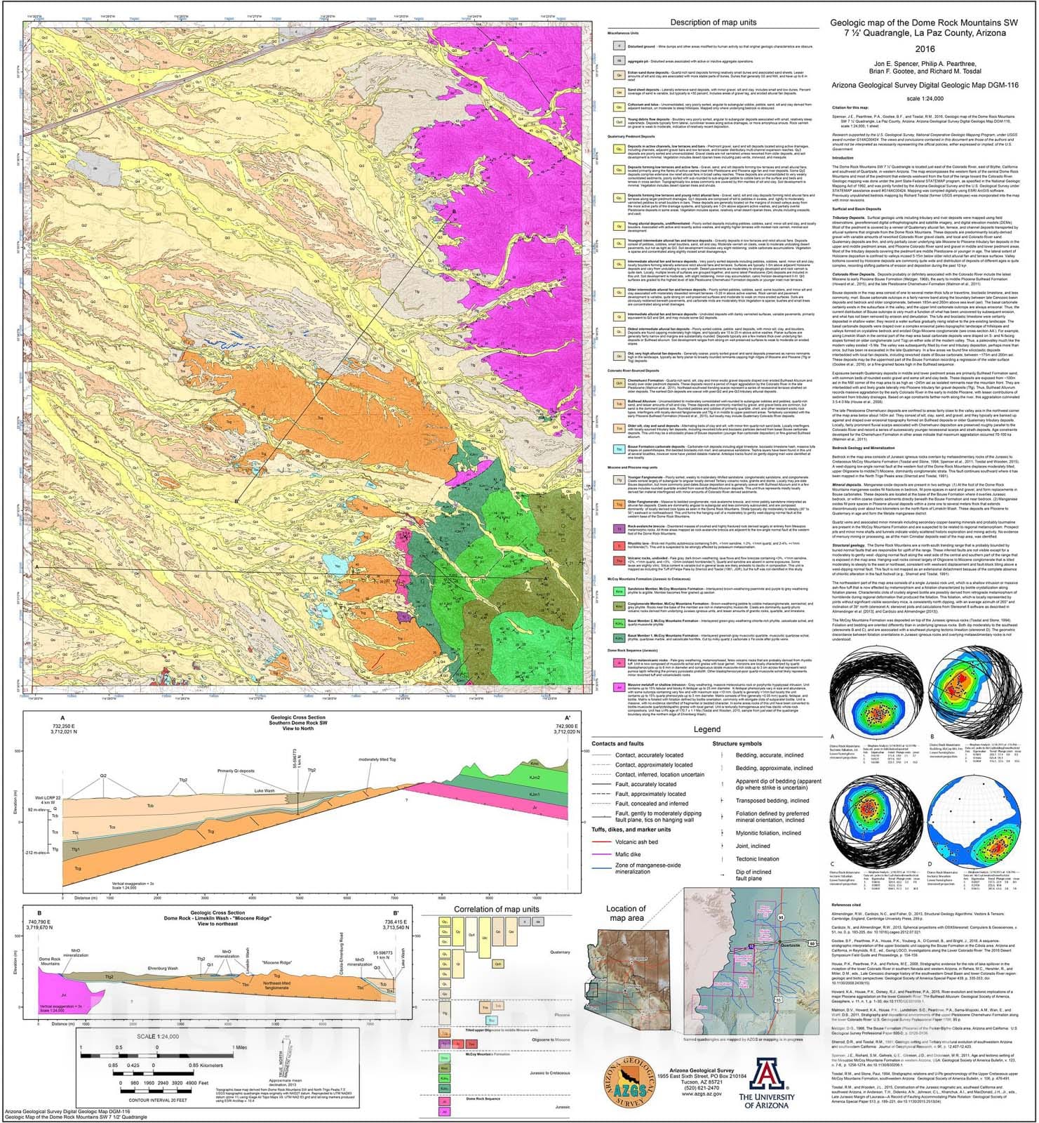 Map : Geologic Map of the Dome Rock Mountains SW seven 1/2' Quadrangle, La Paz County, Arizona, 2016 Cartography Wall Art :