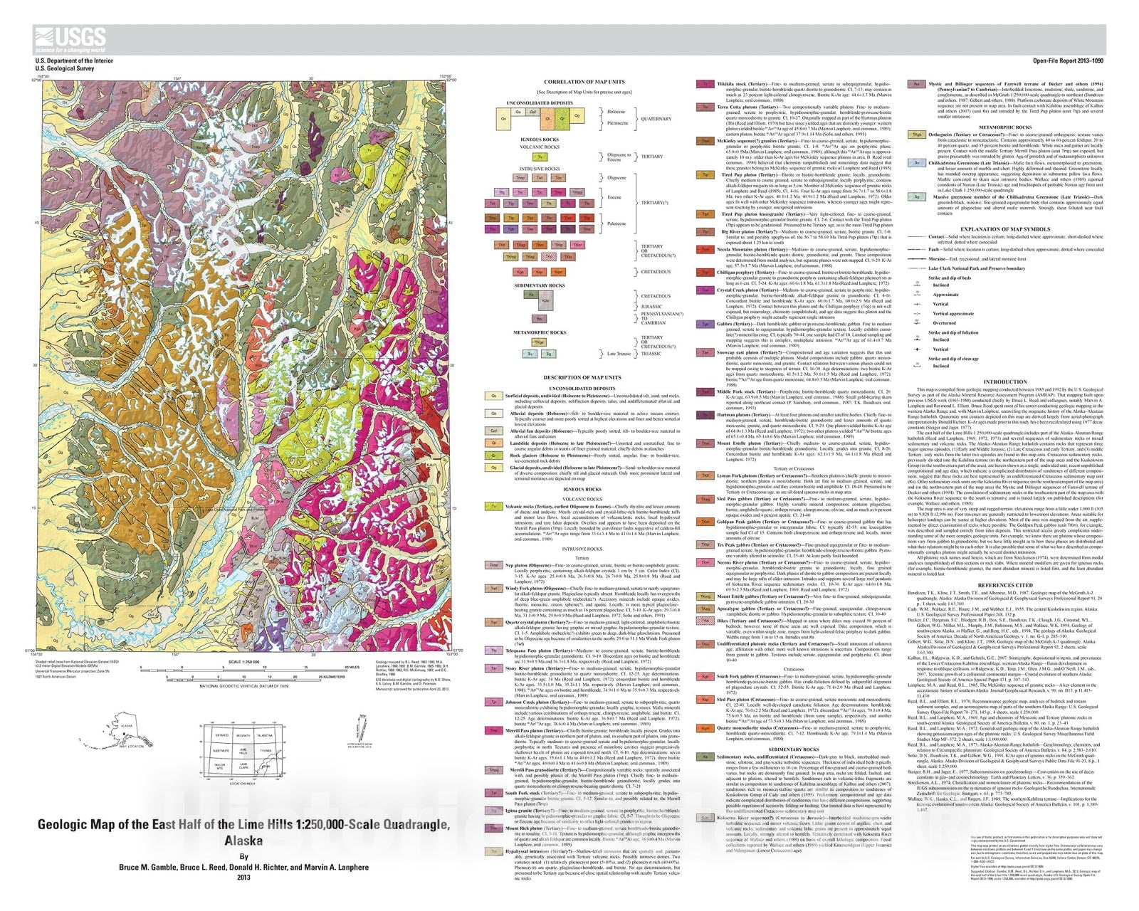 Map : Geologic map of the east half of the Lime Hills 1:250,000-scale quadrangle, Alaska, 2013 Cartography Wall Art :
