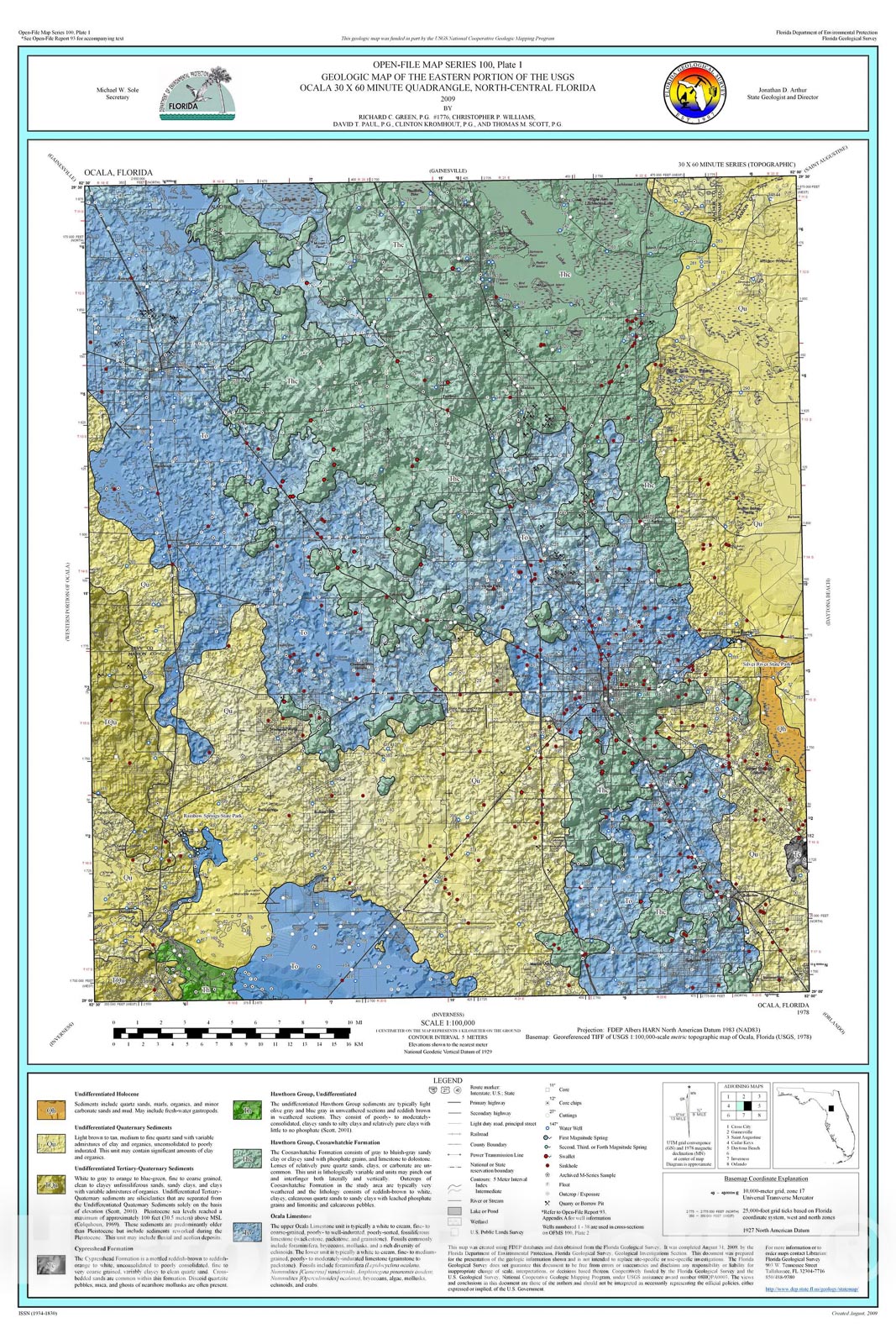 Map : Geologic map of the eastern portion of the USGS Ocala thirty x sixty minute quadrangle, north-central Florida, 2009 Cartography Wall Art :