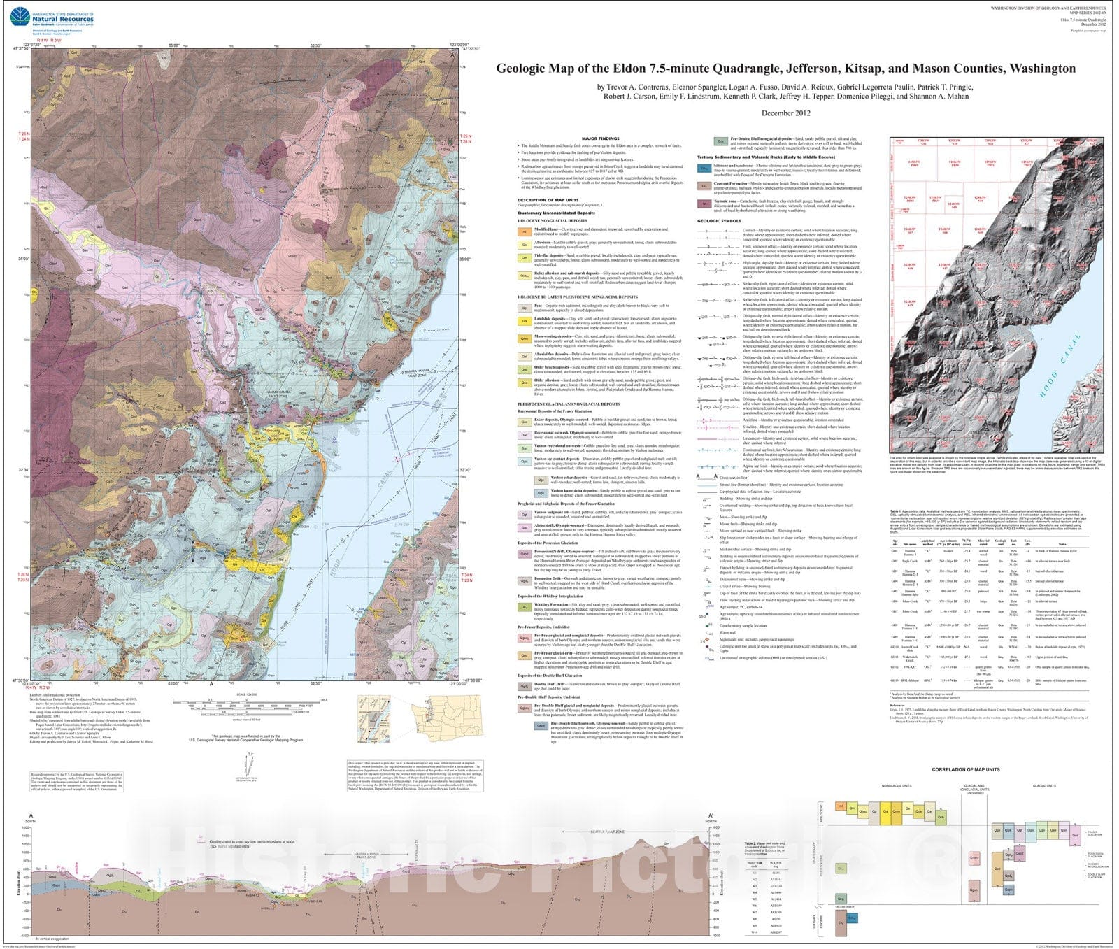 Map : Geologic map of the Eldon 7.5-minute quadrangle, Jefferson, Kitsap, and Mason Counties, Washington, 2012 Cartography Wall Art :