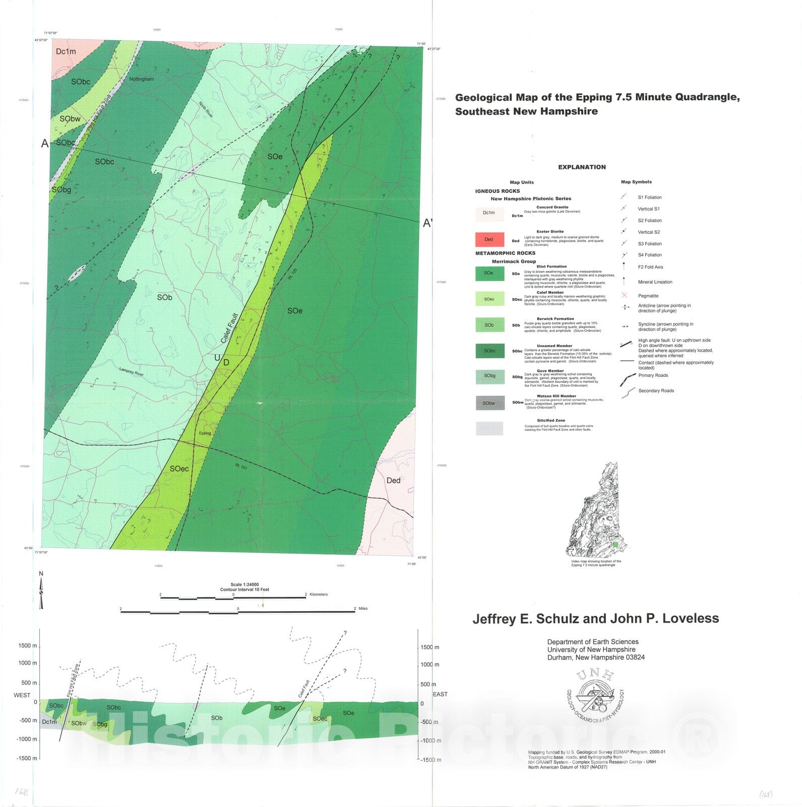 Map : Geologic map of the Epping 7.5 Minute quadrangle, southeast New Hampshire, 2003 Cartography Wall Art :