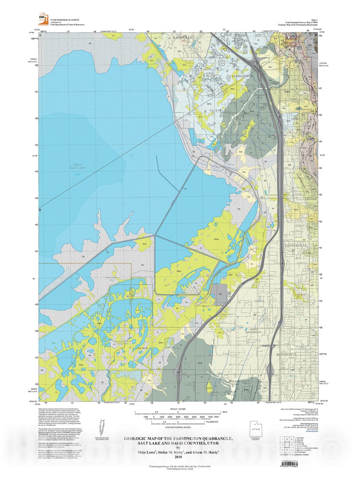 Map : Geologic map of the Farmington quadrangle, Salt Lake and Davis Counties, Utah, 2018 Cartography Wall Art :