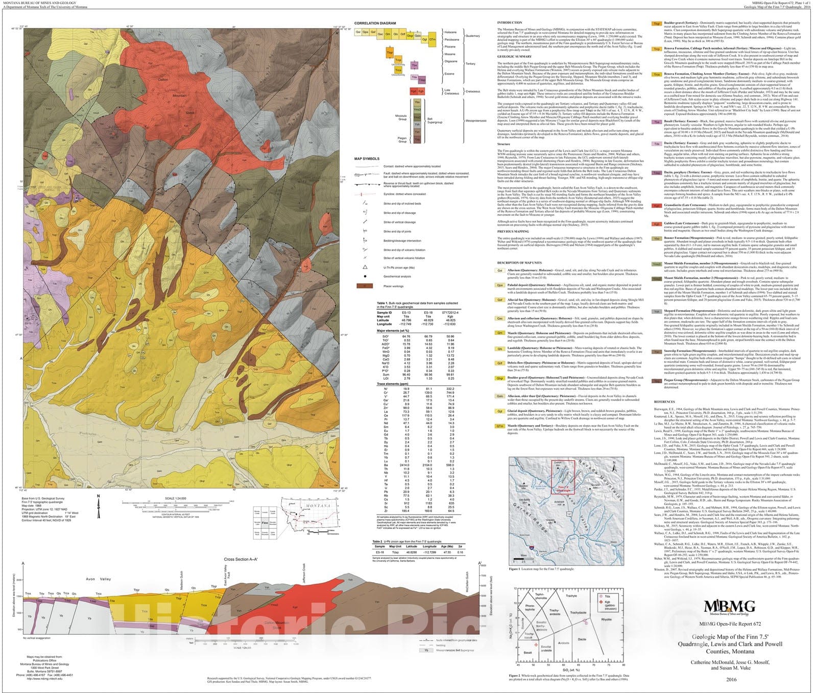 Map : Geologic map of the Finn 7.5' quadrangle, Lewis and Clark and Powell Counties, Montana, 2016 Cartography Wall Art :
