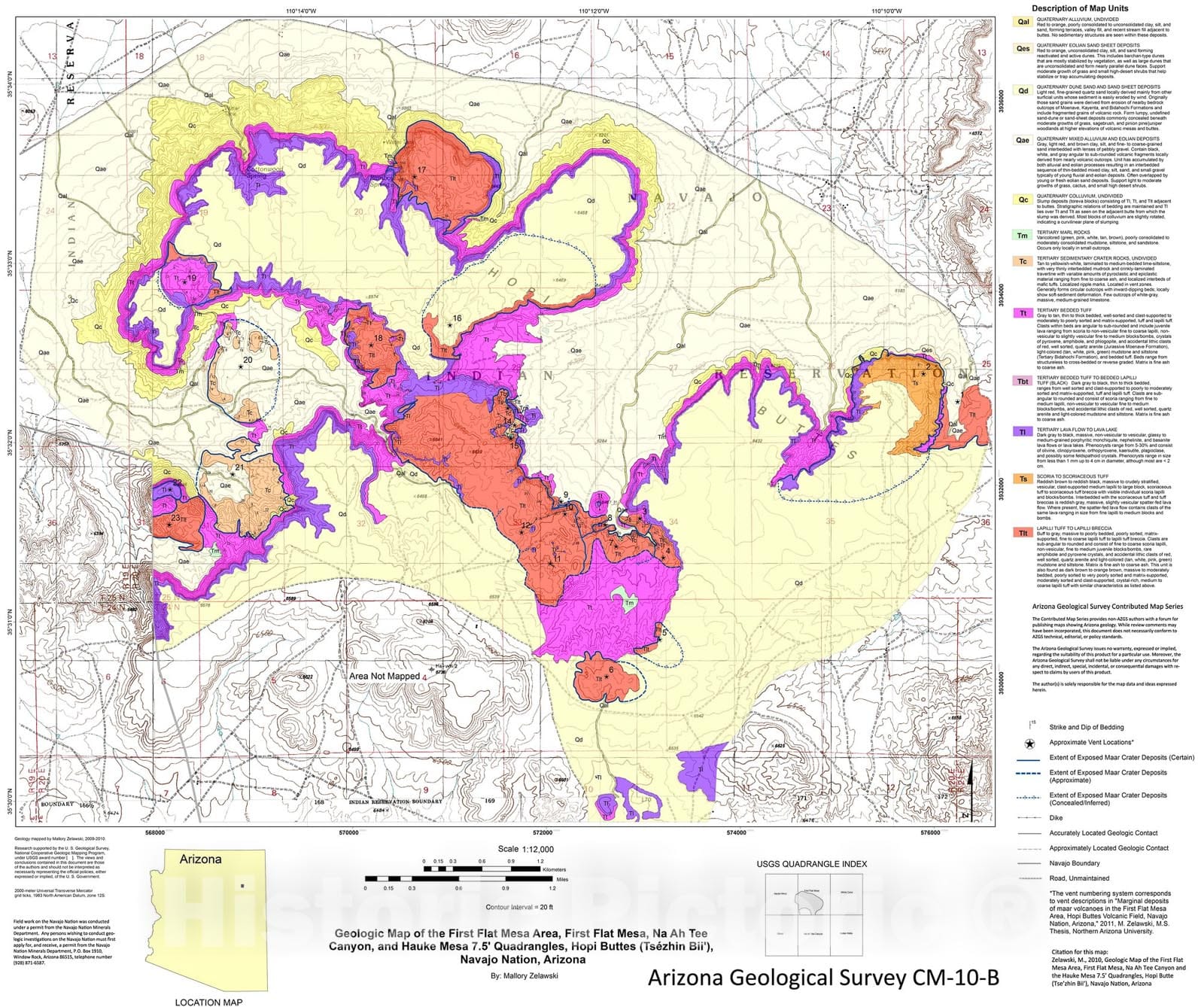 Map : Geologic map of the First Flat Mesa area, First Flat Mesa, Na Ah Tee Canyon, and Hauke Mesa 7.5' quadrangles, Hopi Buttes, 2010 Cartography Wall Art :