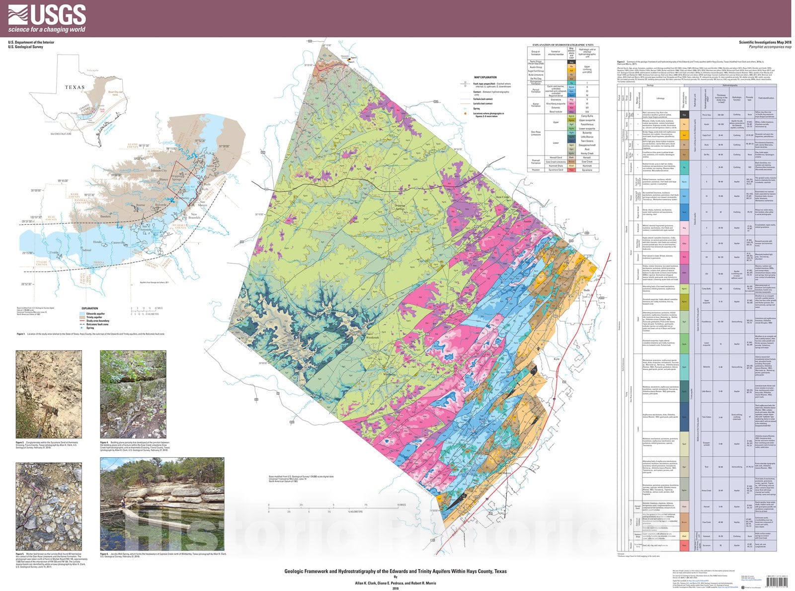 Map : Geologic framework and hydrostratigraphy of the Edwards and Trinity aquifers within Hays County, Texas, 2018 Cartography Wall Art :