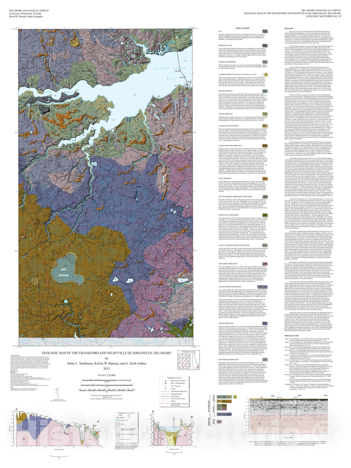 Map : Geologic map of the Frankford and Selbyville quadrangles, Delaware, 2013 Cartography Wall Art :