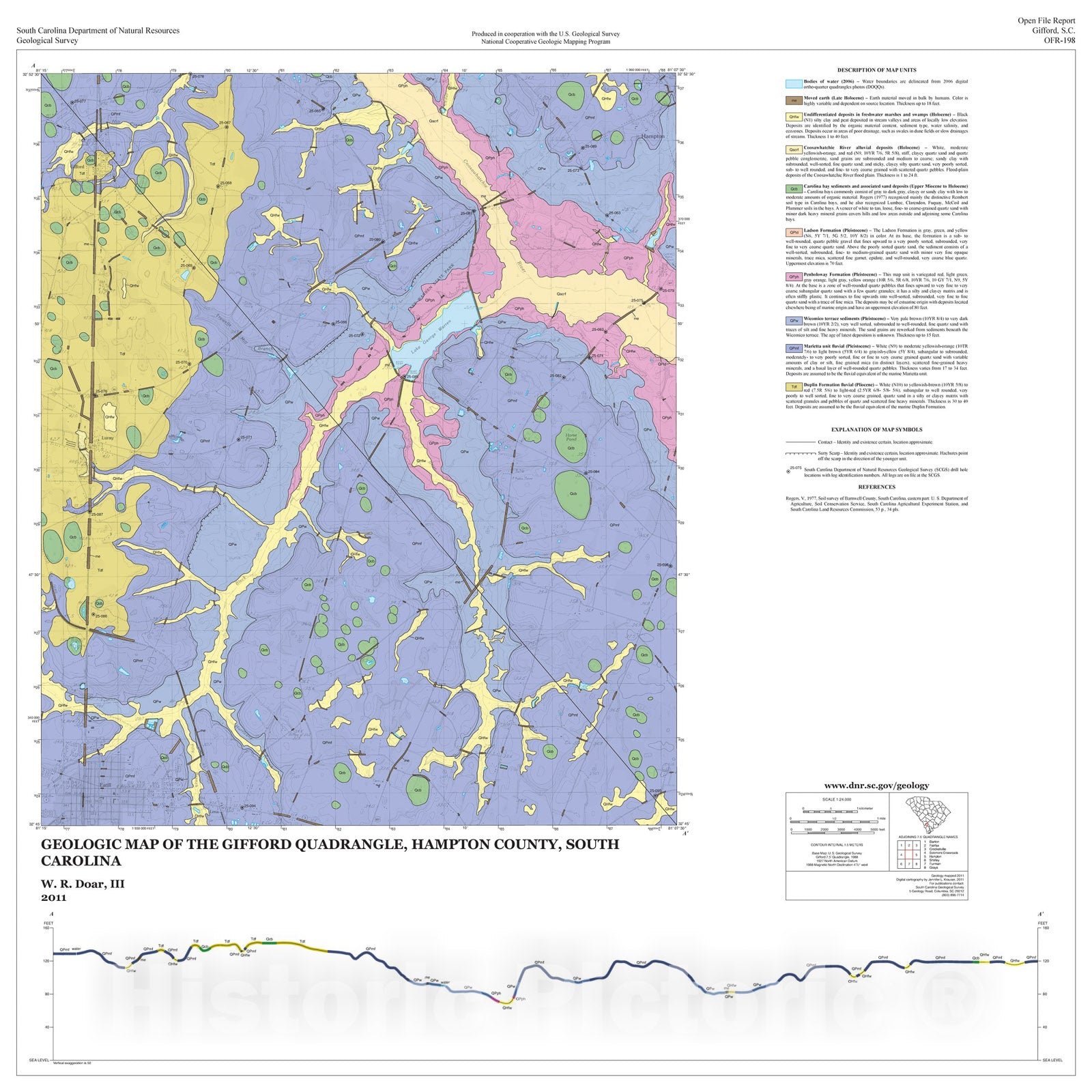 Map : Geologic Map of the Gifford Quadrangle, Hampton County, South Carolina, 2011 Cartography Wall Art :