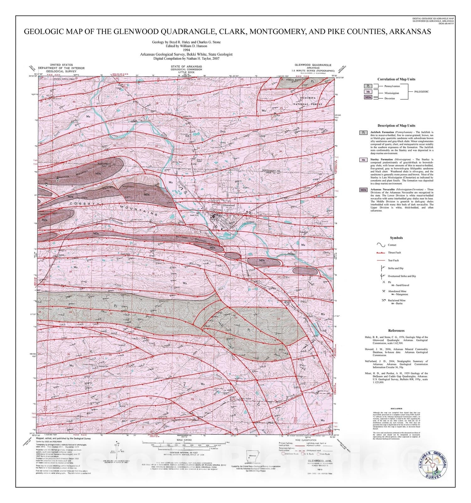 Geologic map of the Glenwood Quadrangle, Clark, Montgomery, and Pike counties, Arkansas