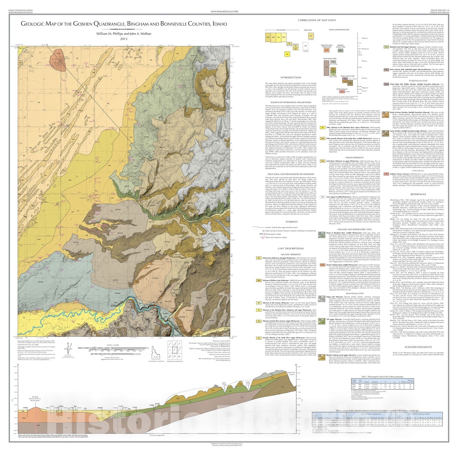 Map : Geologic Map of the Goshen Quadrangle, Bingham and Bonneville Counties, Idaho, 2013 Cartography Wall Art :