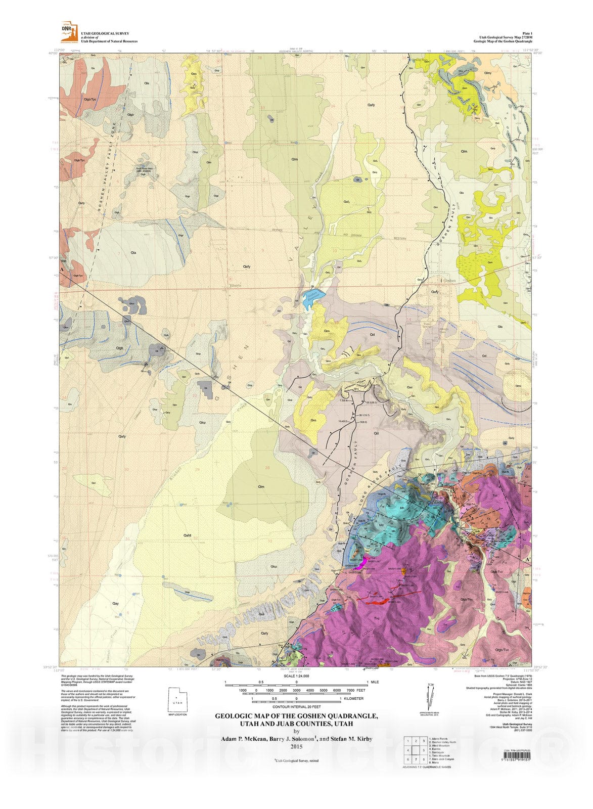 Map : Geologic map of the Goshen quadrangle, Utah and Juab Counties, Utah, 2015 Cartography Wall Art :