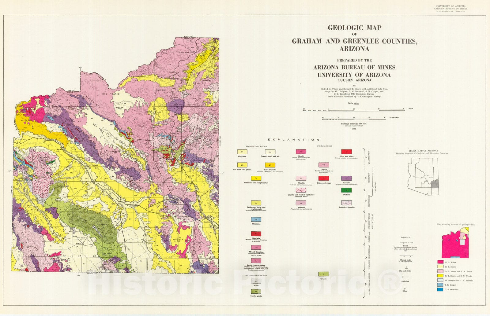 Map : Geologic map of Graham and Greenlee Counties, Arizona, 1958 Cartography Wall Art :