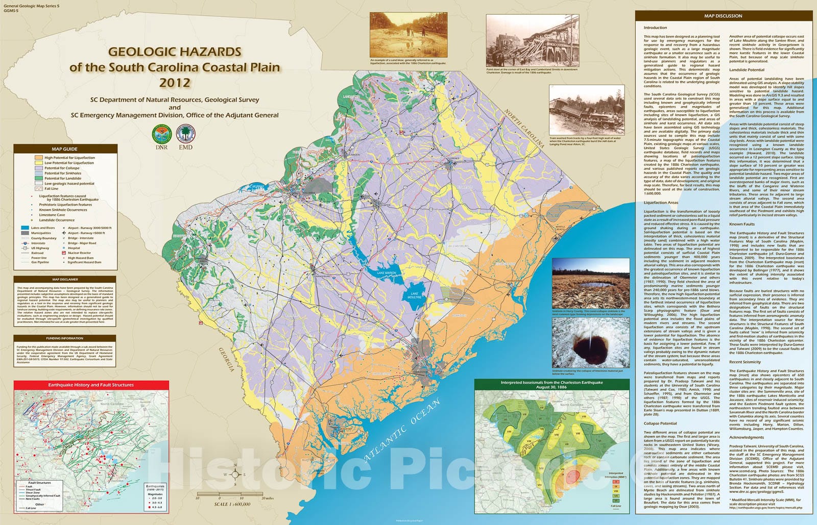 Map : Geologic Hazards of the South Carolina Coastal Plain, 2012 Cartography Wall Art :