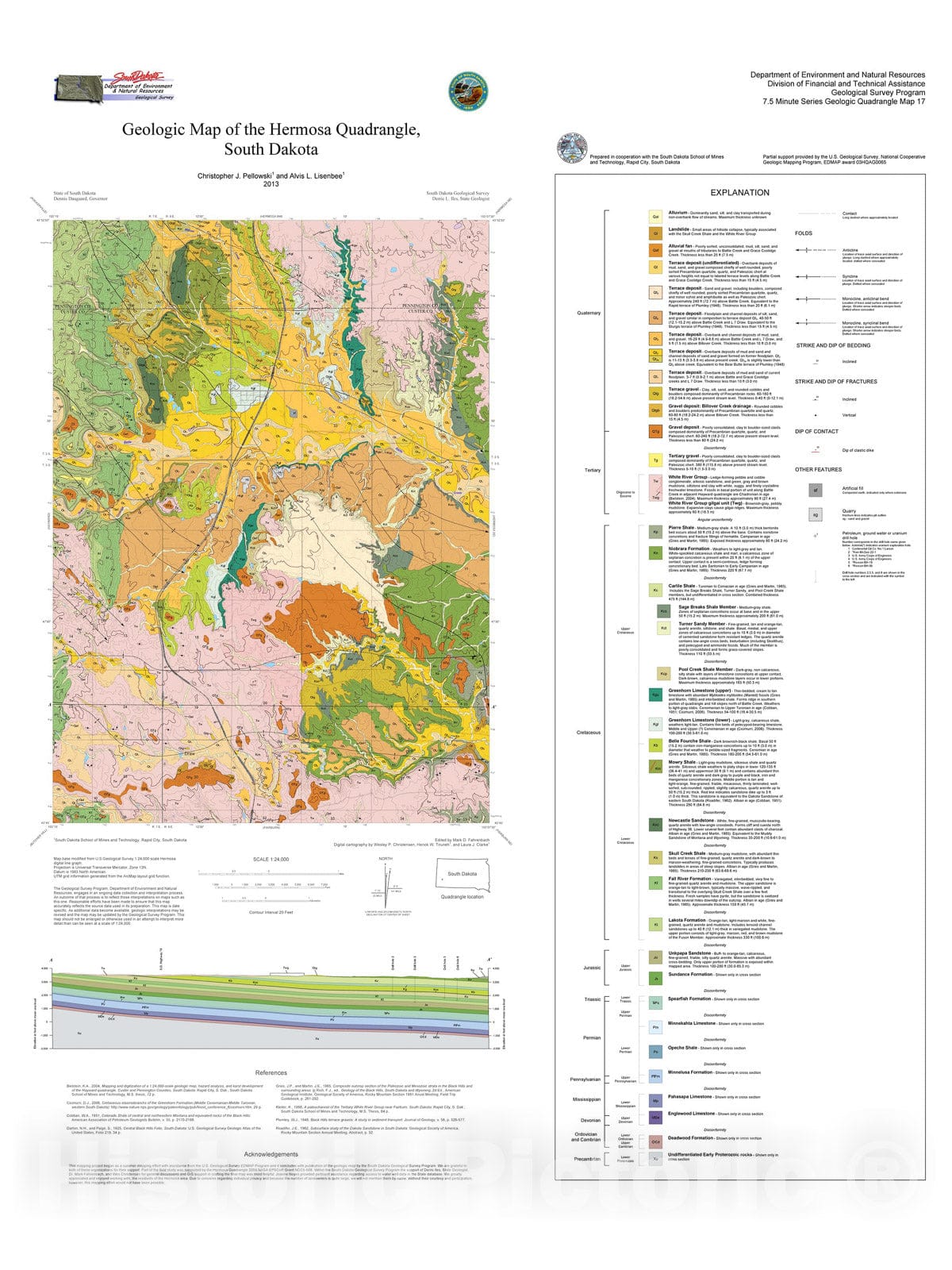 Map : Geologic map of the Hermosa quadrangle, South Dakota, 2013 Cartography Wall Art :