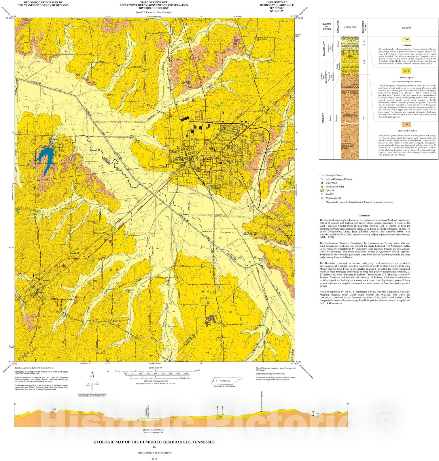 Map : Geologic map of the Humboldt quadrangle, Tennessee, 2012 Cartography Wall Art :