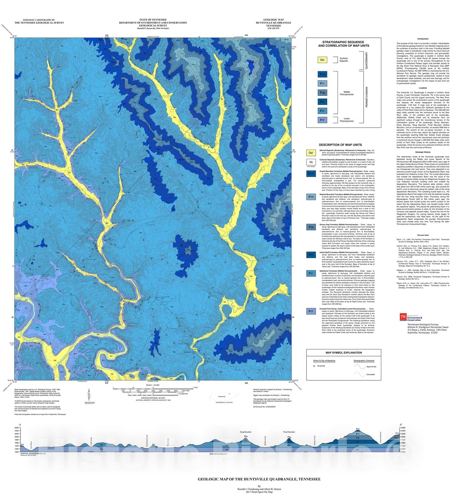 Map : Geologic map of the Huntsville quadrangle, Tennessee, 2017 Cartography Wall Art :