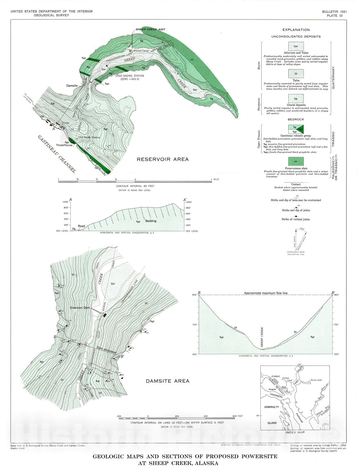 Map : Geologic investigations of proposed powersites at Sheep Creek, Carlson Creek, and Turner Lake, Alaska, 1962 Cartography Wall Art :