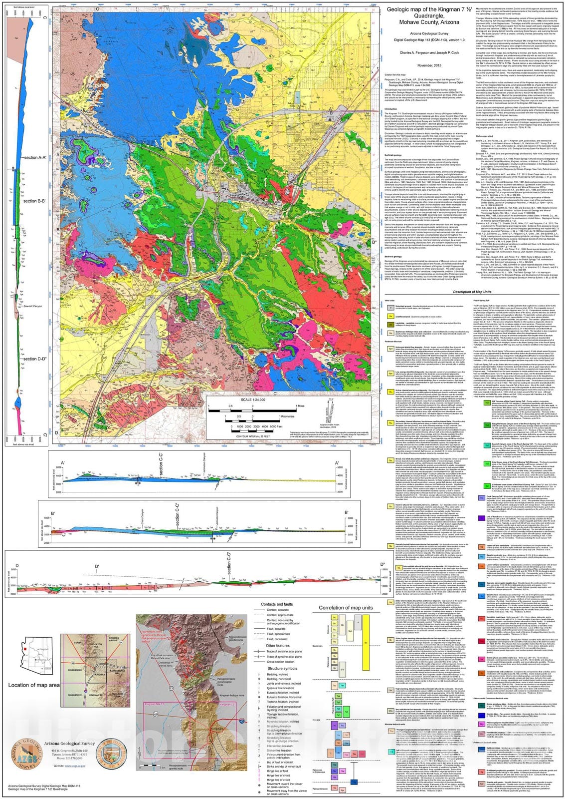 Map : Geologic map of the Kingman seven 1/2' Quadrangle, Mohave County, Arizona, 2015 Cartography Wall Art :
