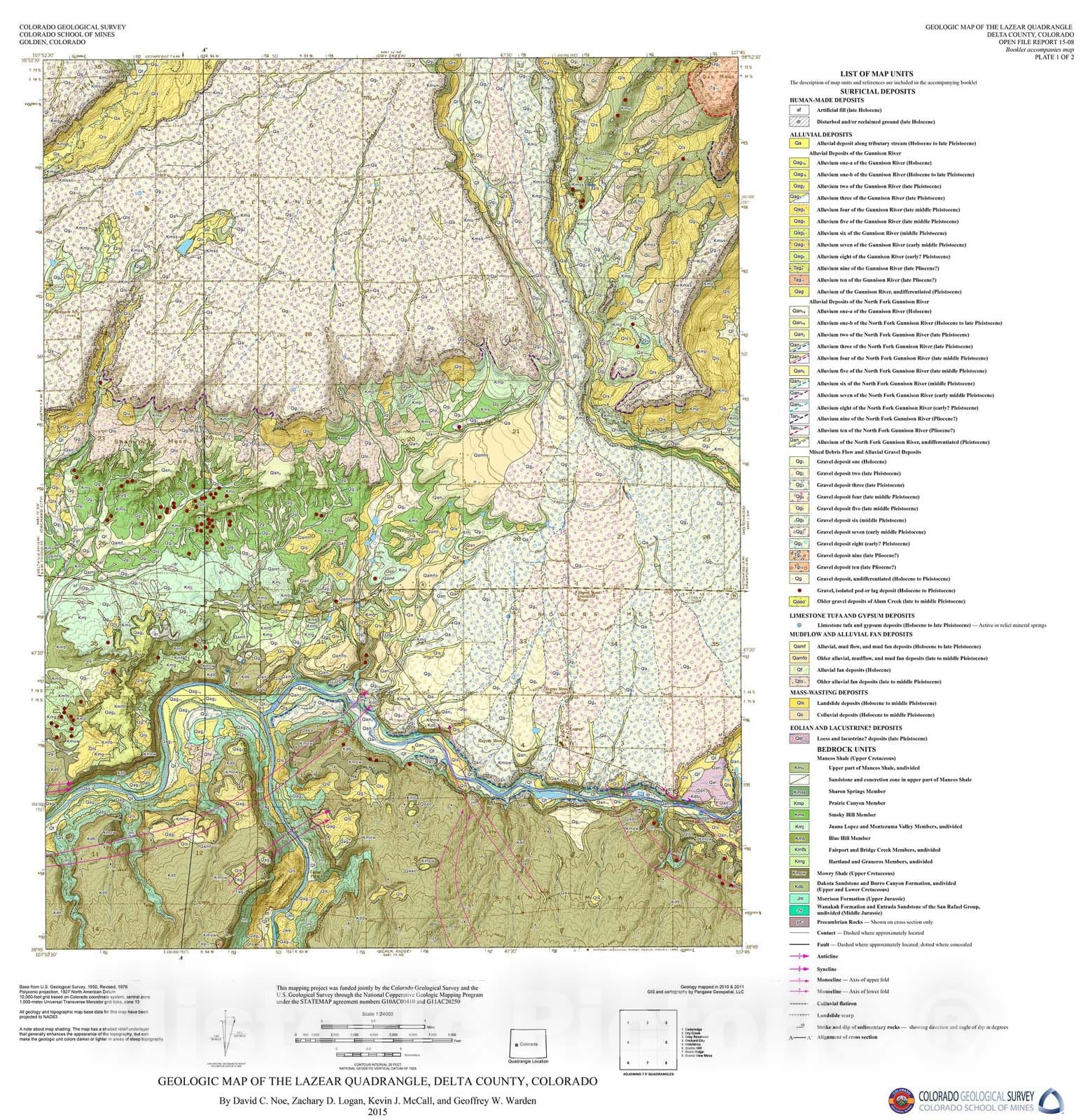 Map : Geologic Map of the Lazear Quadrangle, Delta County, Colorado, 2015 Cartography Wall Art :