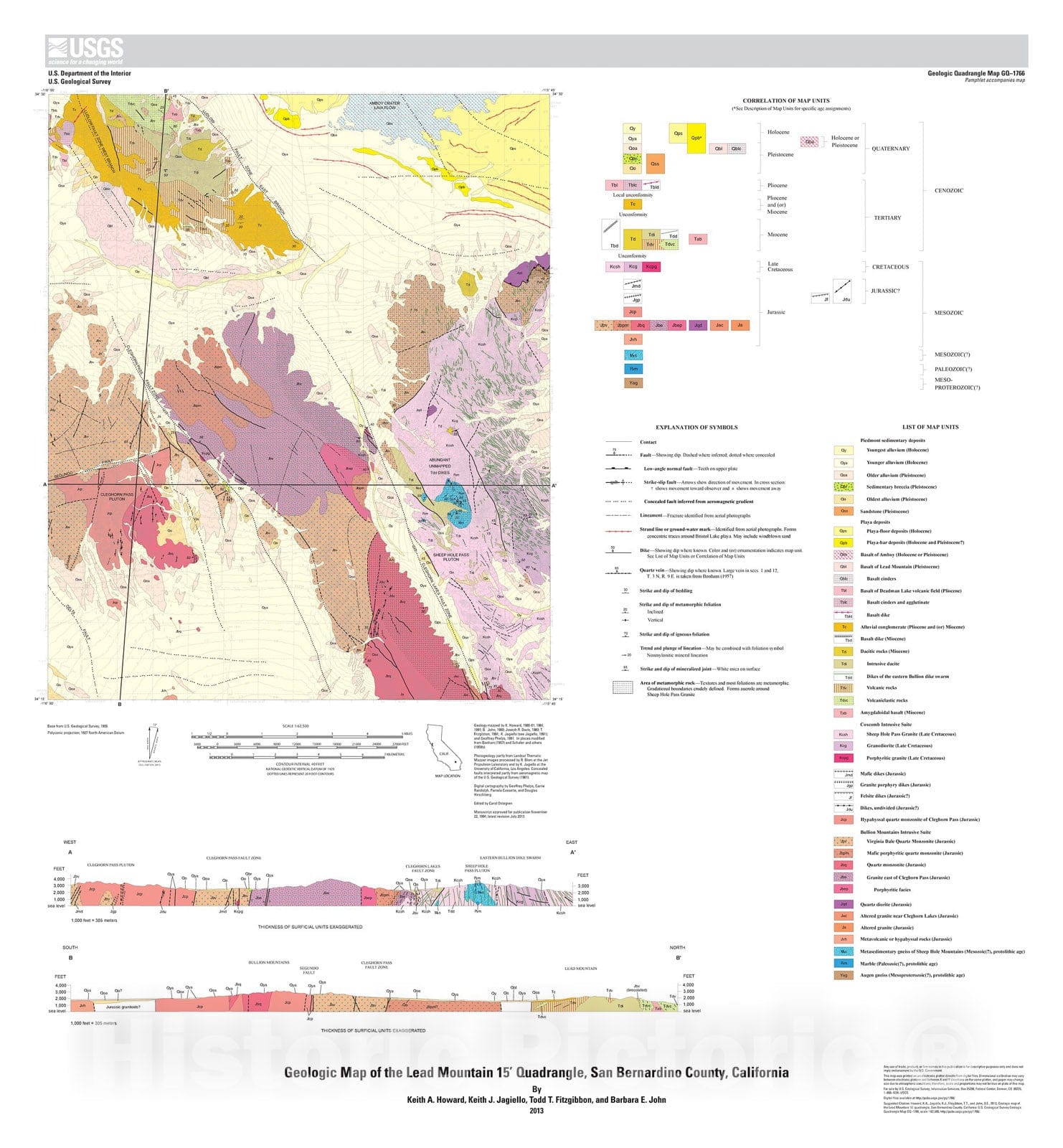 Map : Geologic map of the Lead Mountain 15' quadrangle, San Bernardino County, California, 2013 Cartography Wall Art :