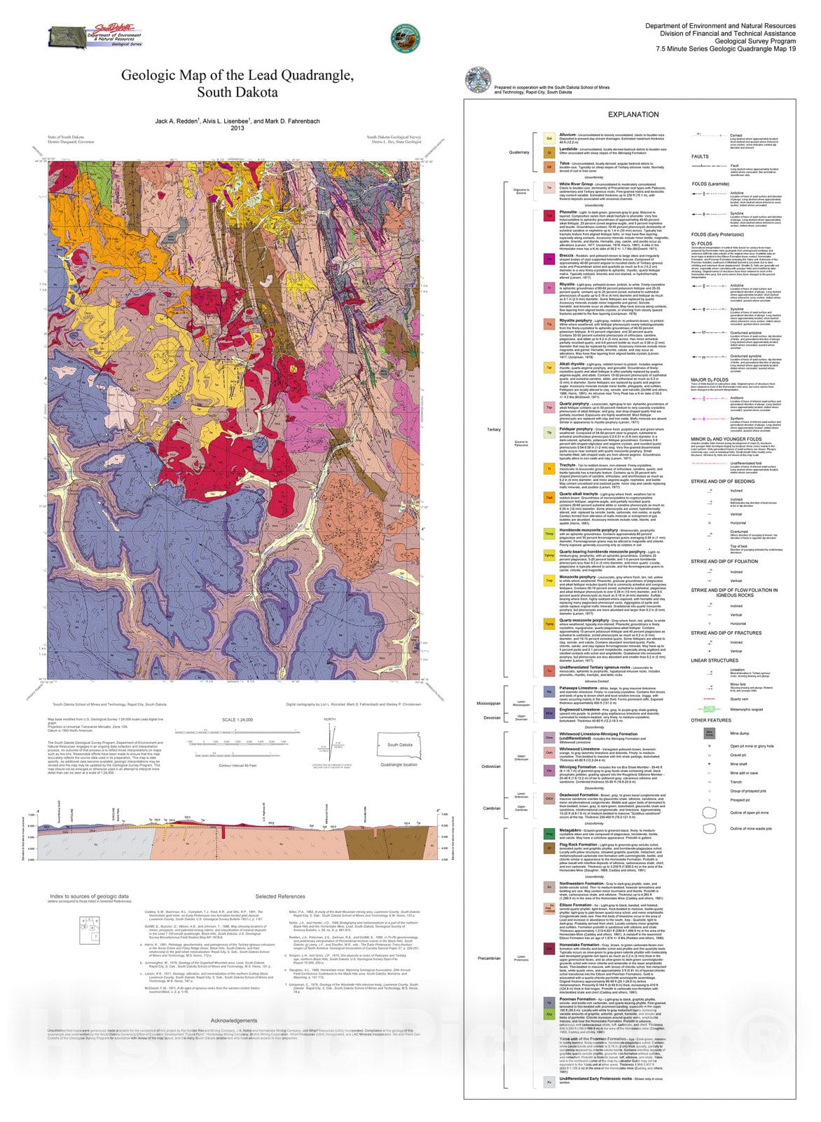 Map : Geologic map of the Lead quadrangle, South Dakota, 2013 Cartography Wall Art :