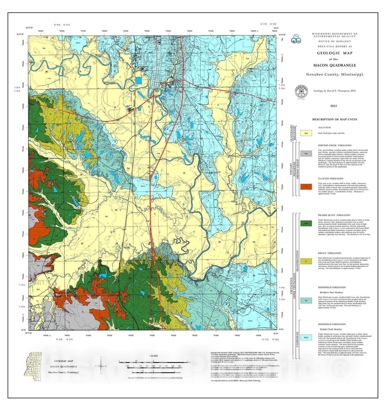 • .Map : Geologic map of the Macon quadrangle, Noxubee County, Mississippi, 2012 Cartography Wall Art :
