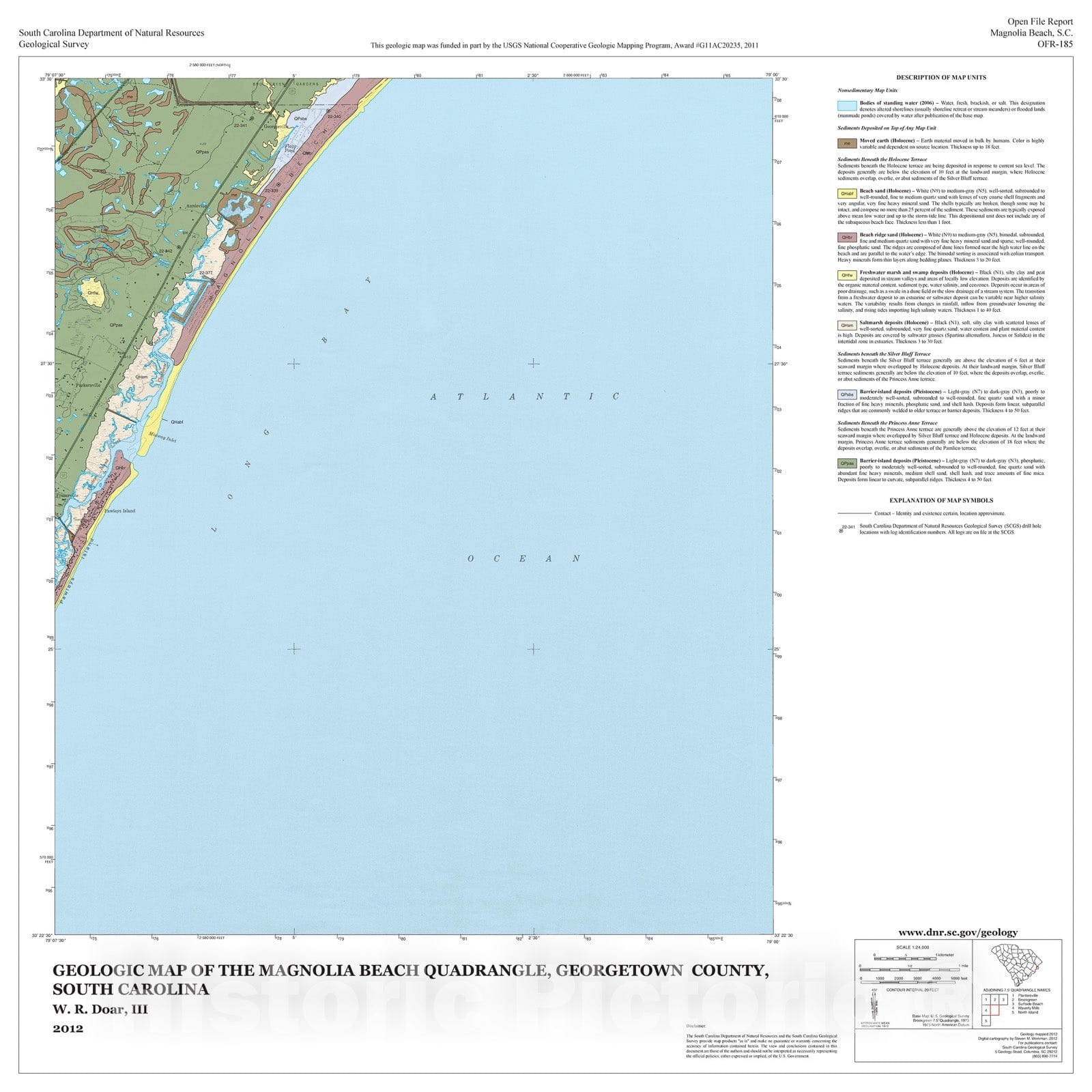 Map : Geologic Map of the Magnolia Beach Quadrangle, Georgetown County, South Carolina, 2012 Cartography Wall Art :