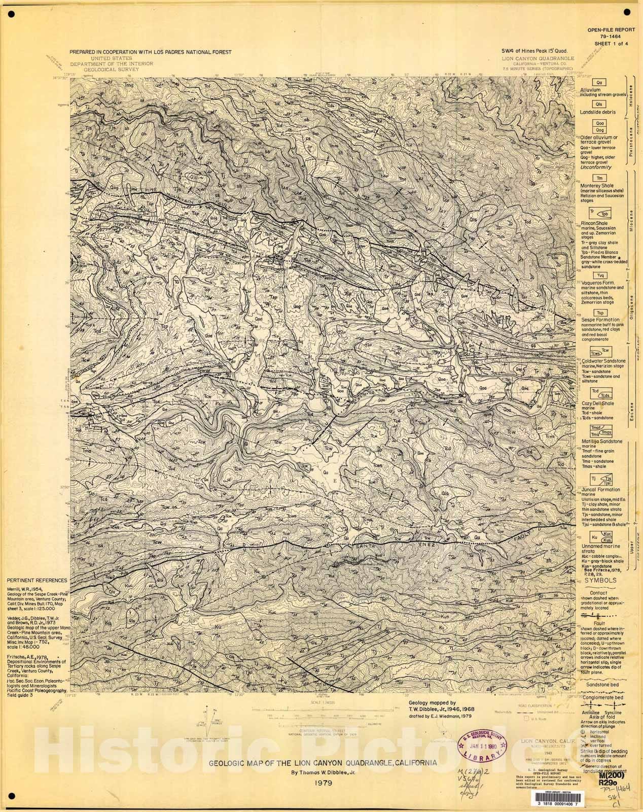 Map : Geologic maps of the San Guillermo, Lion Canyon, Topatopa Mountains, and Lockwood Valley quadrangles, California, 1979 Cartography Wall Art :