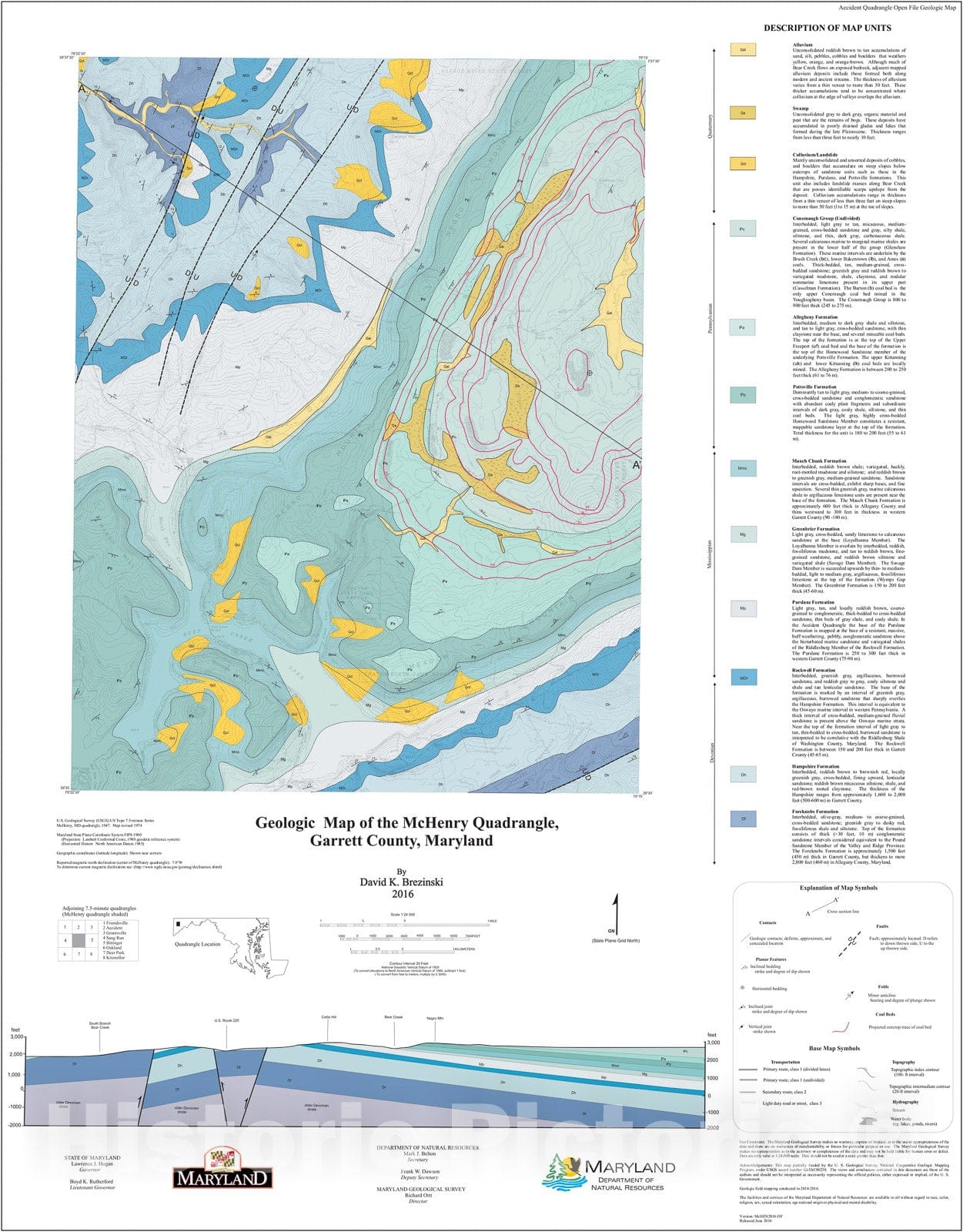 Map : Geologic map of the McHenry quadrangle, Garrett County, Maryland, 2016 Cartography Wall Art :
