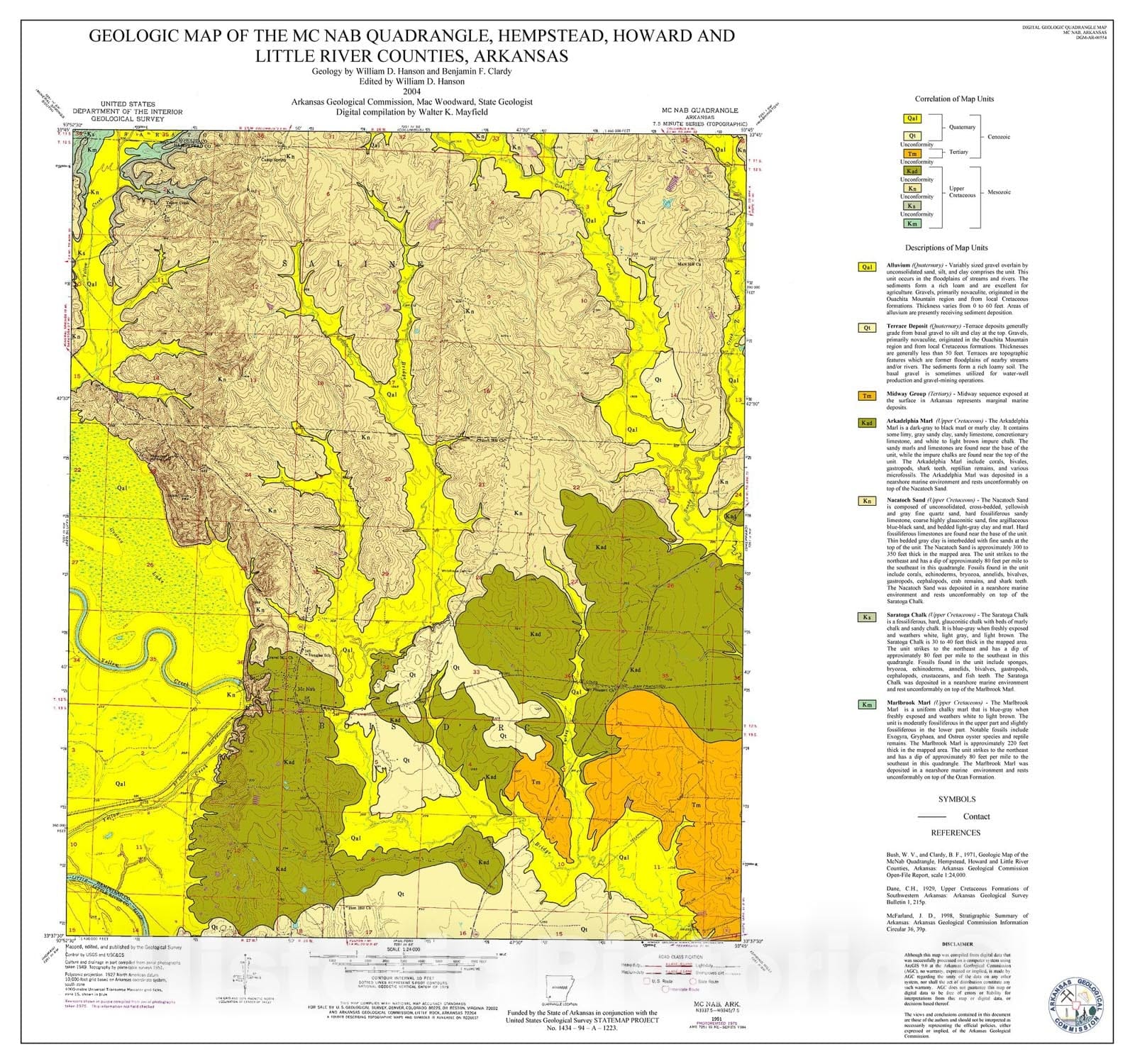 Geologic map of the McNab Quadrangle, Hempstead, Howard, and Little River counties, Arkansas