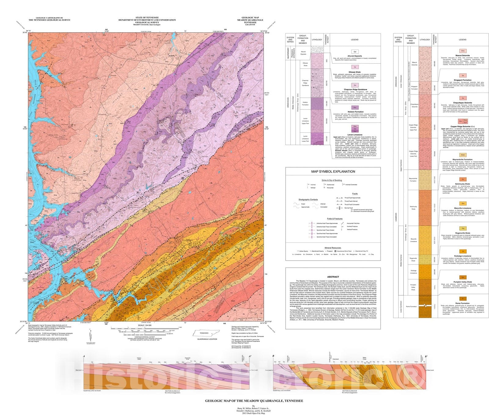 Map : Geologic map of the Meadow quadrangle, Tennessee, 2015 Cartography Wall Art :
