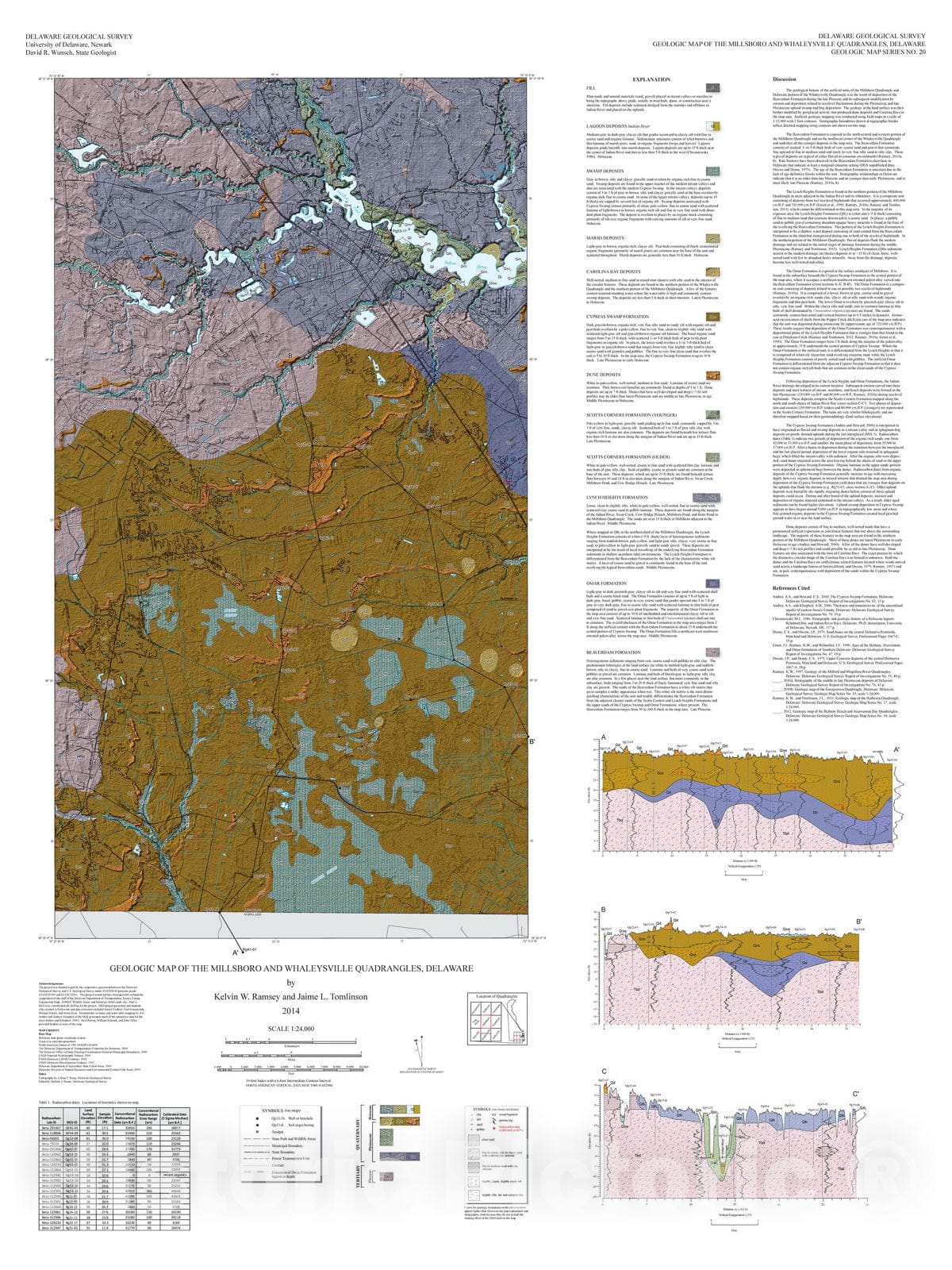 Map : Geologic map of the Millsboro and Whaleysville quadrangles, Delaware, 2014 Cartography Wall Art :