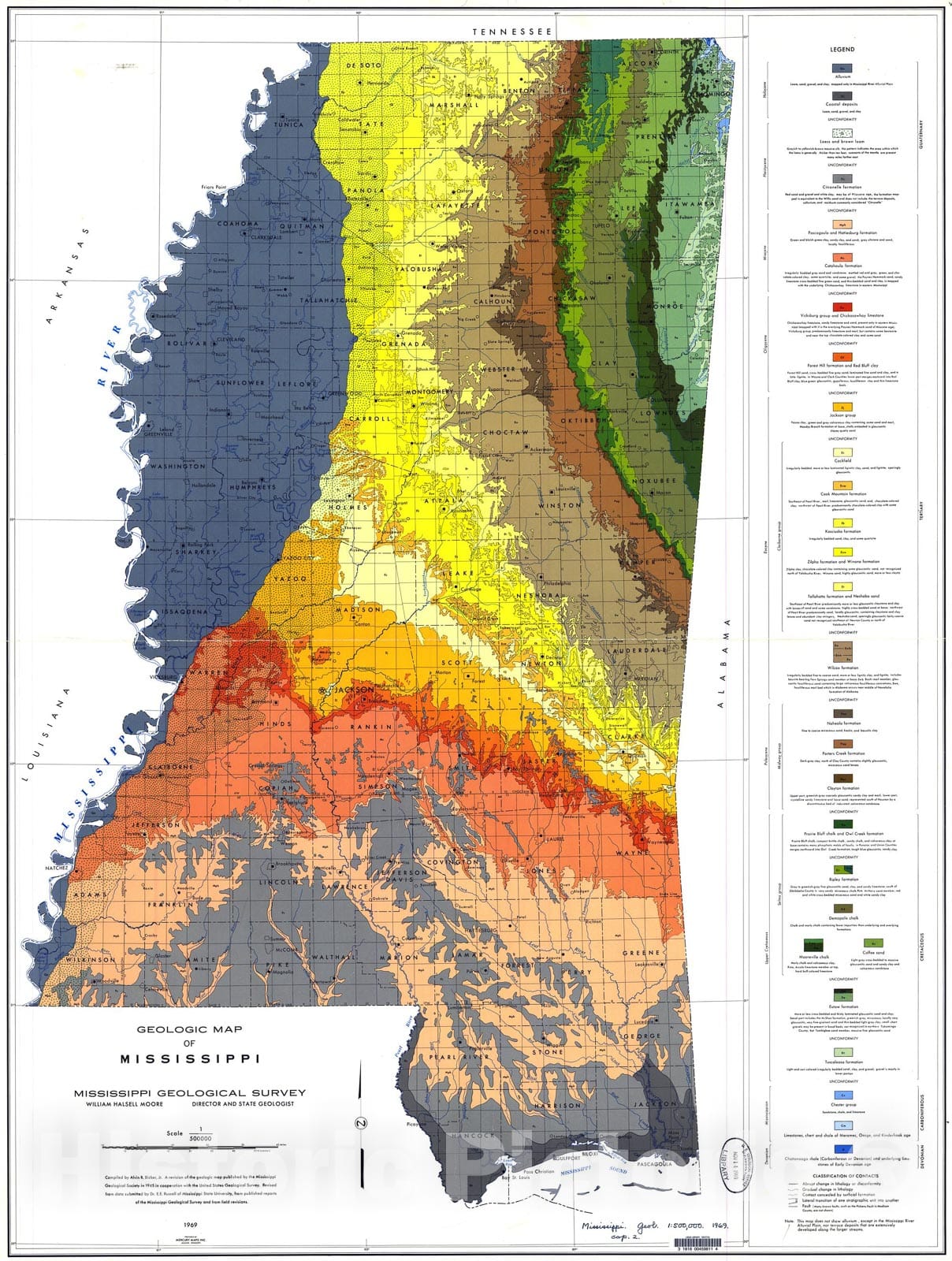 Map : Geologic map of Mississippi, 1969 Cartography Wall Art :