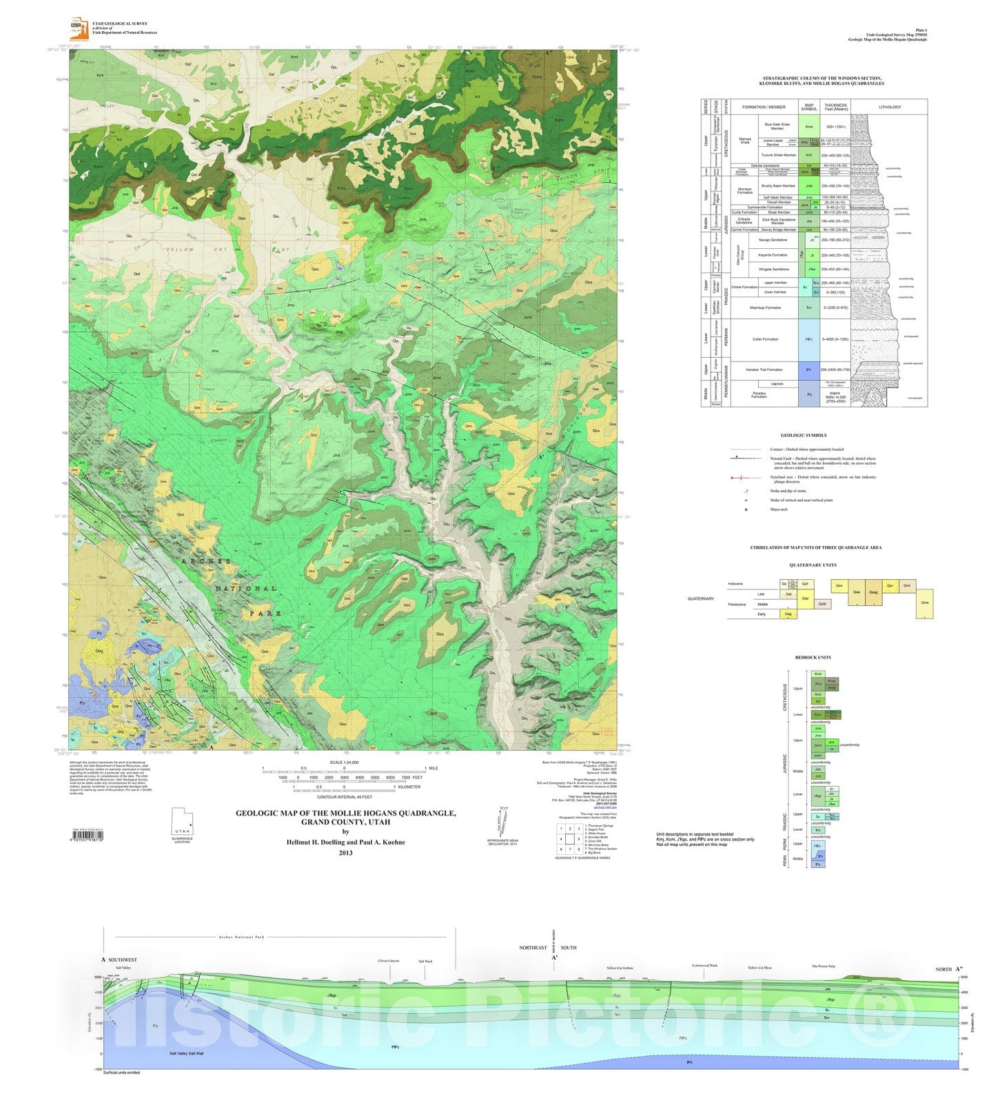 Map : Geologic map of the Mollie Hogans quadrangle, Grand County, Utah, 2014 Cartography Wall Art :
