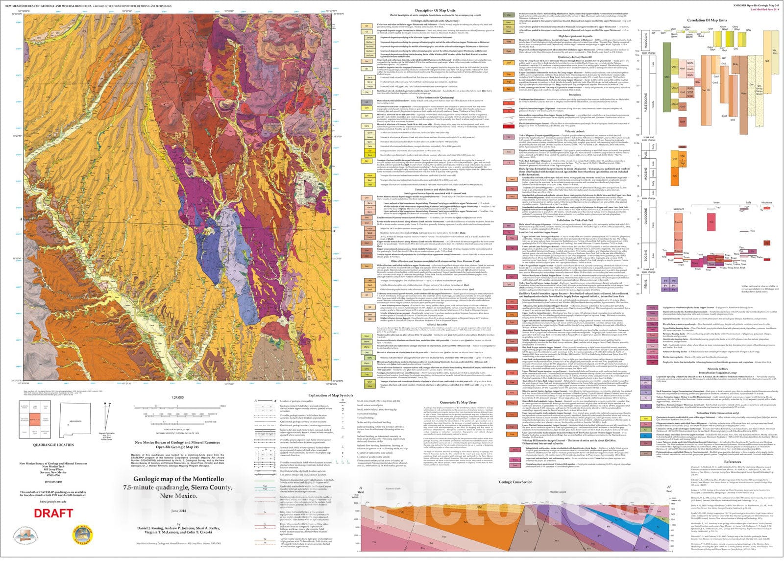 Map : Geologic map of the Monticello 7.5-Minute Quadrangle, Sierra and Socorro Counties, New Mexico, 2014 Cartography Wall Art :