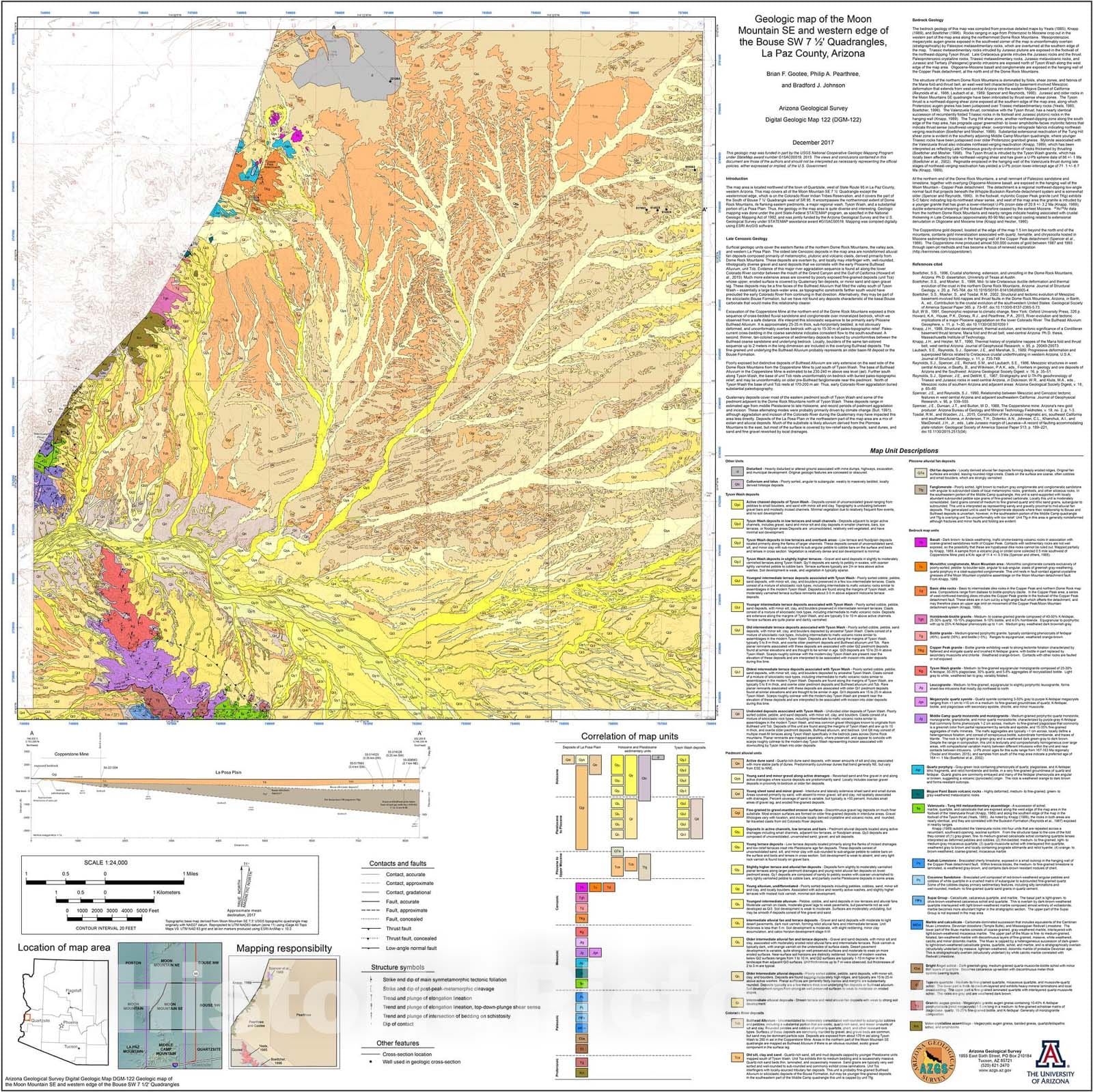 Map : Geologic map of the Moon Mountain SE and western edge of the Bouse SW seven 1/2' Quadrangles, La Paz County, Arizona, v. 1.0, 201seven Cartography Wall Art :