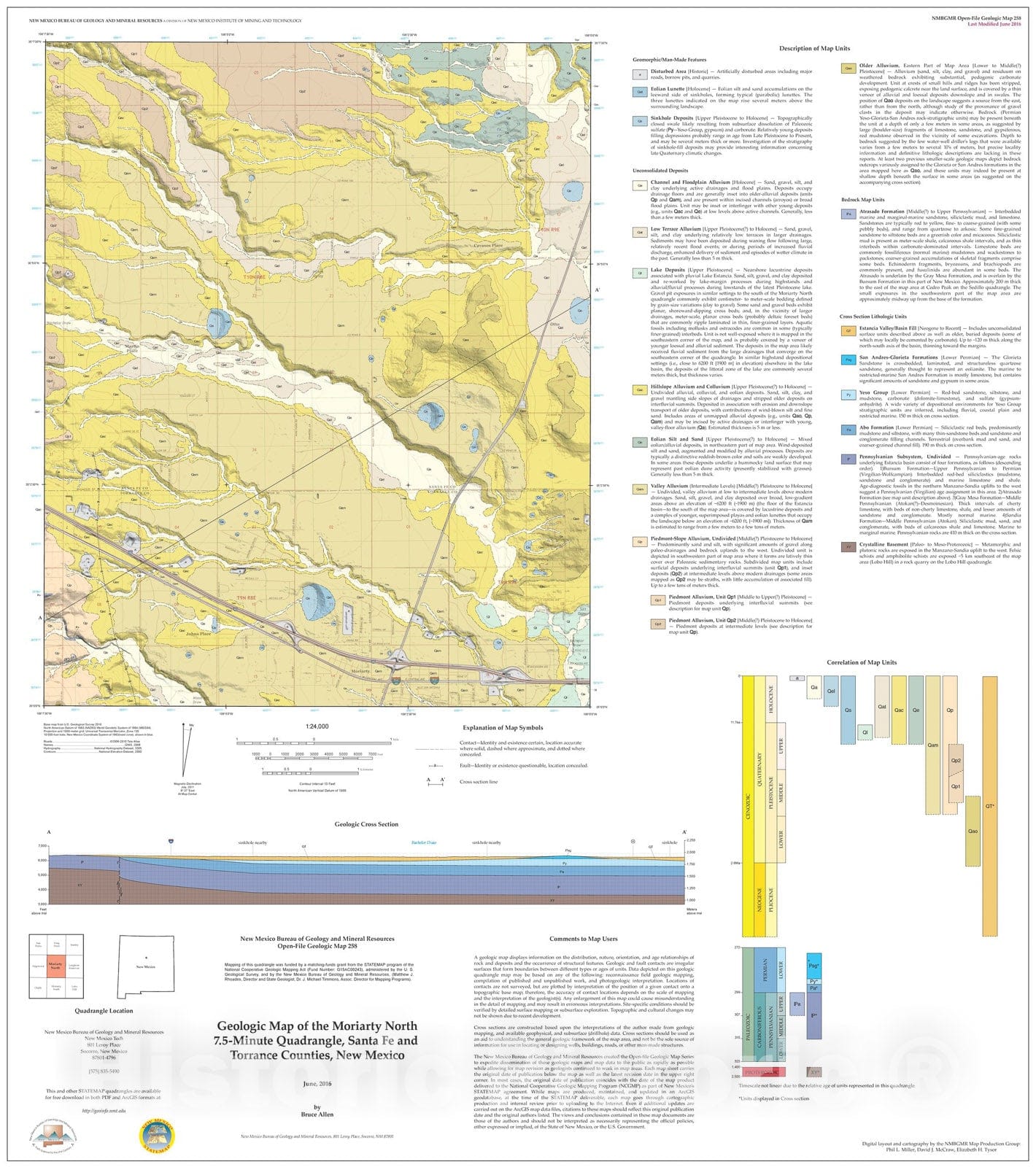 Map : Geologic Map of the Moriarty North 7.5-Minute Quadrangle, Santa Fe and Torrance Counties, New Mexico, 2016 Cartography Wall Art :