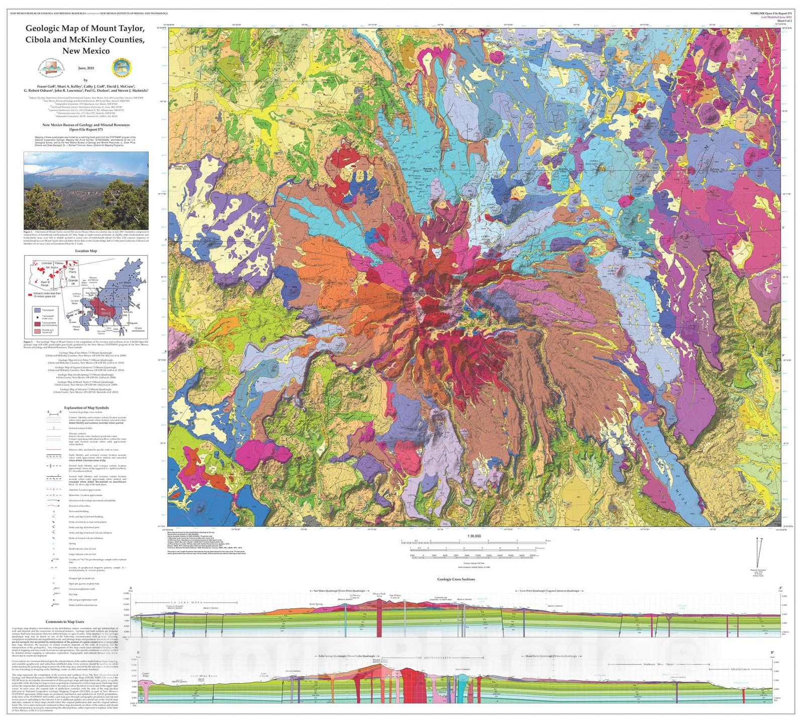 Map : Geologic Map of Mount Taylor, Cibola and McKinley Counties, New Mexico, 2015 Cartography Wall Art :