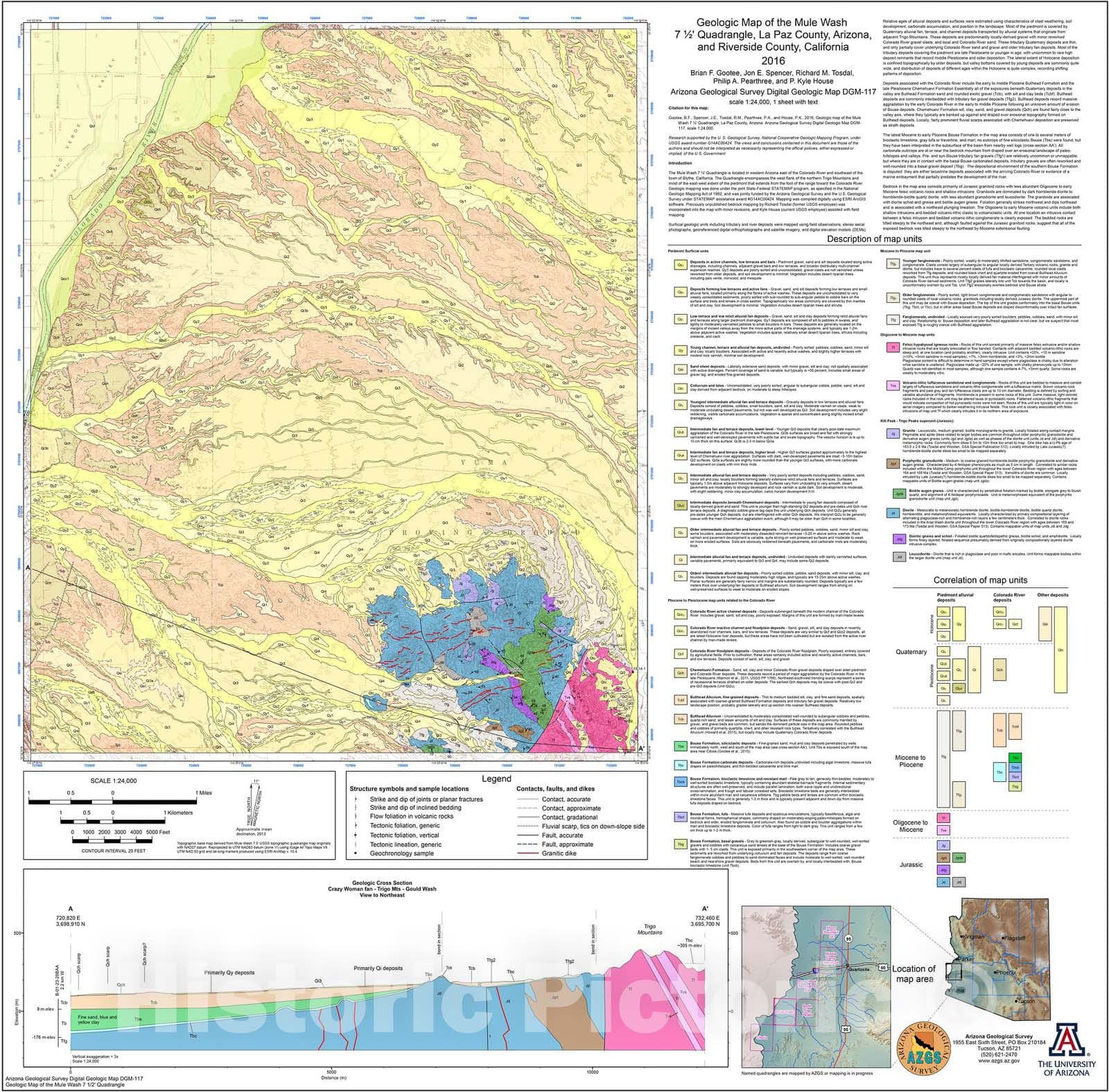 Map : Geologic Map of the Mule Wash seven 1/2' Quadrangle, La Paz County, Arizona, and Riverside County, California, 2016 Cartography Wall Art :