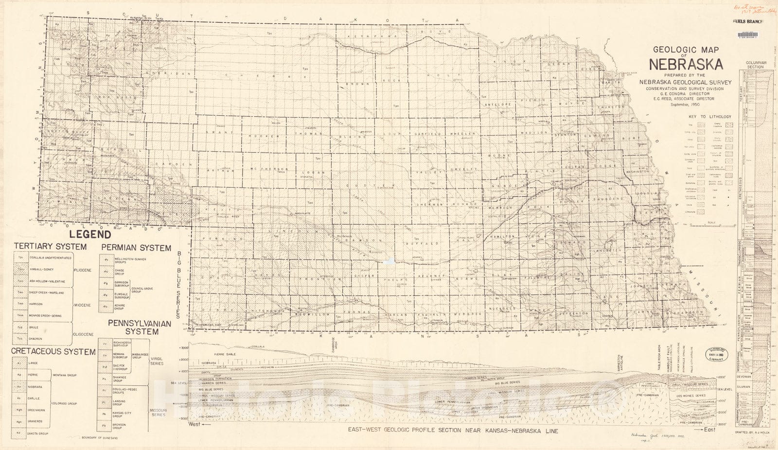 Map : Geologic map of Nebraska, 1950 Cartography Wall Art :