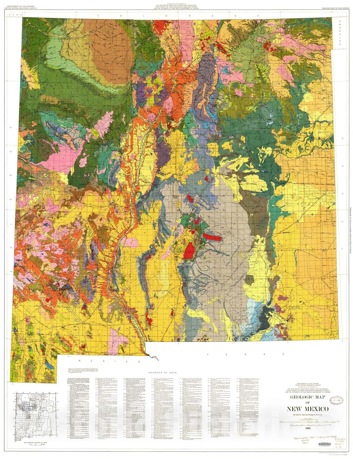 Map : Geologic map of New Mexico, 1965 Cartography Wall Art :