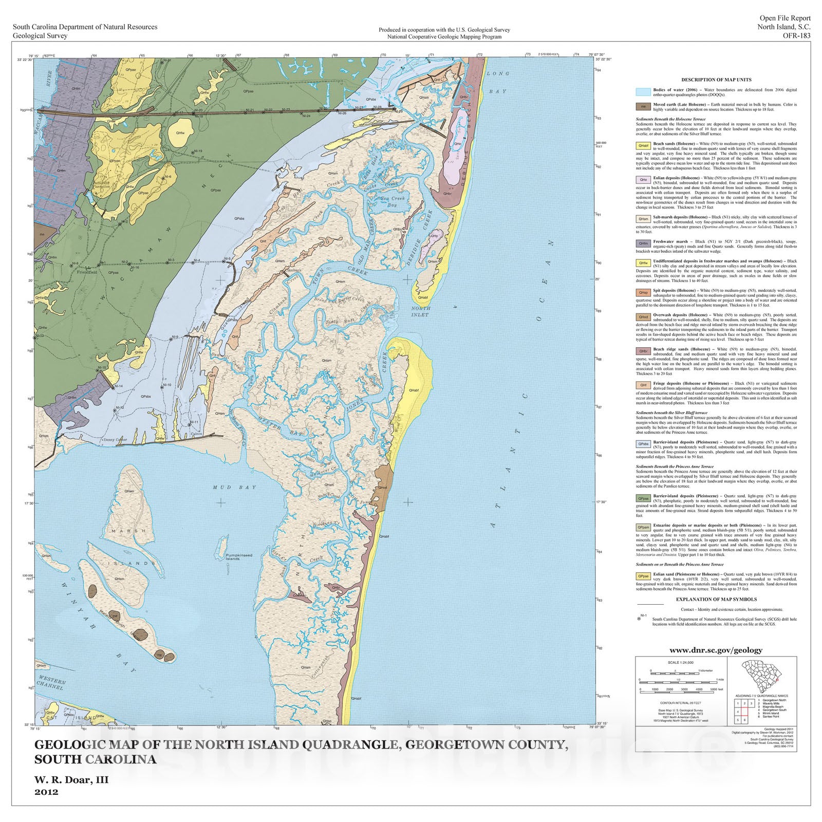 Map : Geologic Map of the North Island Quadrangle, Georgetown County, South Carolina, 2012 Cartography Wall Art :