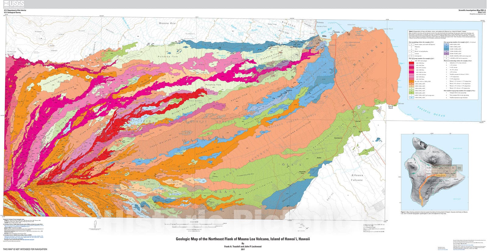 Map : Geologic map of the northeast flank of Mauna Loa volcano, Island of Hawai'i, Hawaii, 2017 Cartography Wall Art :