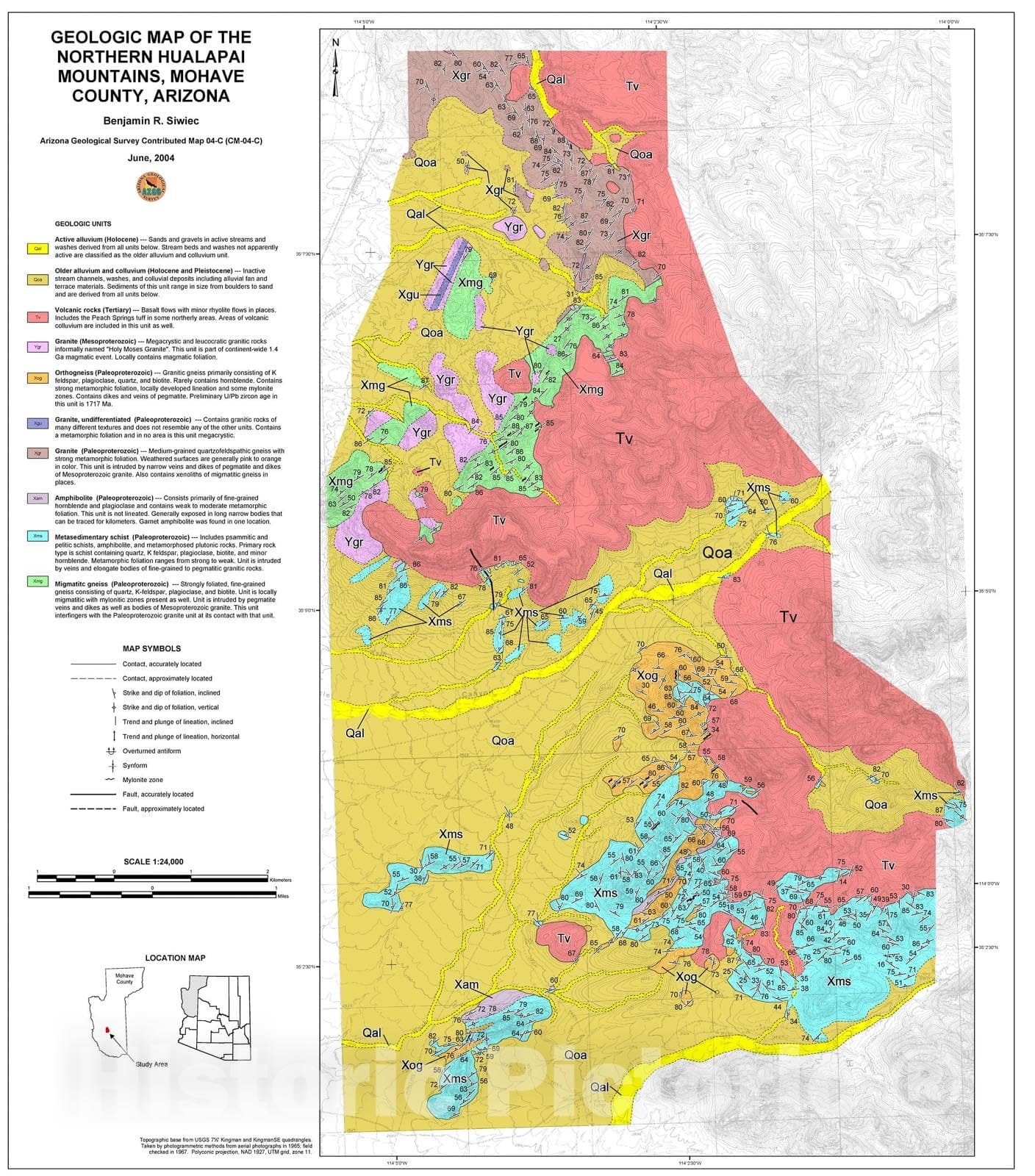 Map : Geologic map of the northern Hualapai Mountains, Mohave County, Arizona, 2004 Cartography Wall Art :