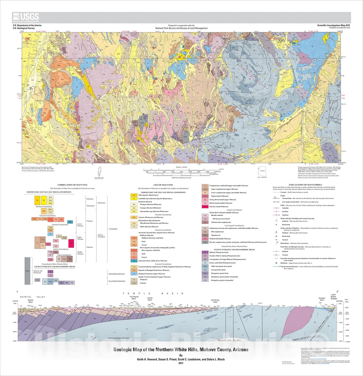 Map : Geologic map of the northern White Hills, Mohave County, Arizona, 2017 Cartography Wall Art :