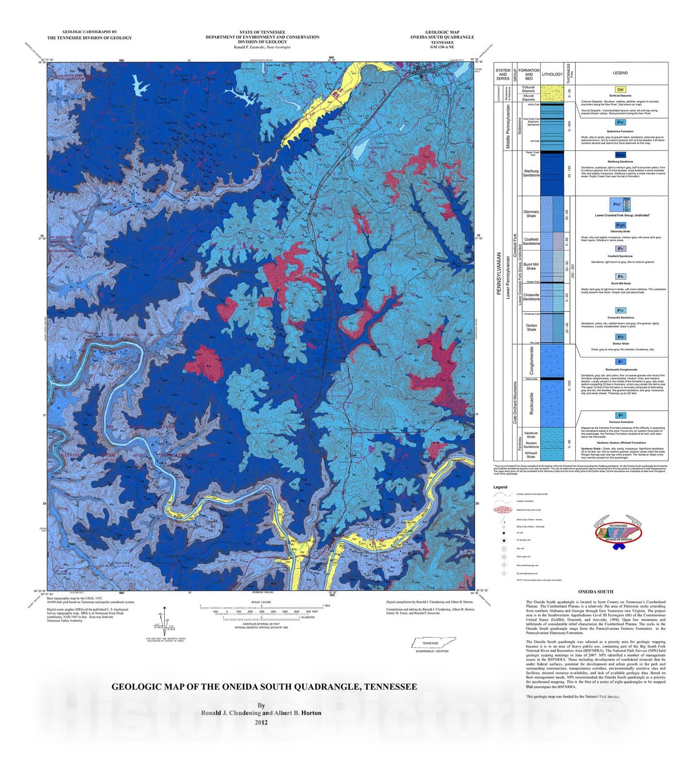 Map : Geologic map of the Oneida South quadrangle, Tennessee, 2012 Cartography Wall Art :
