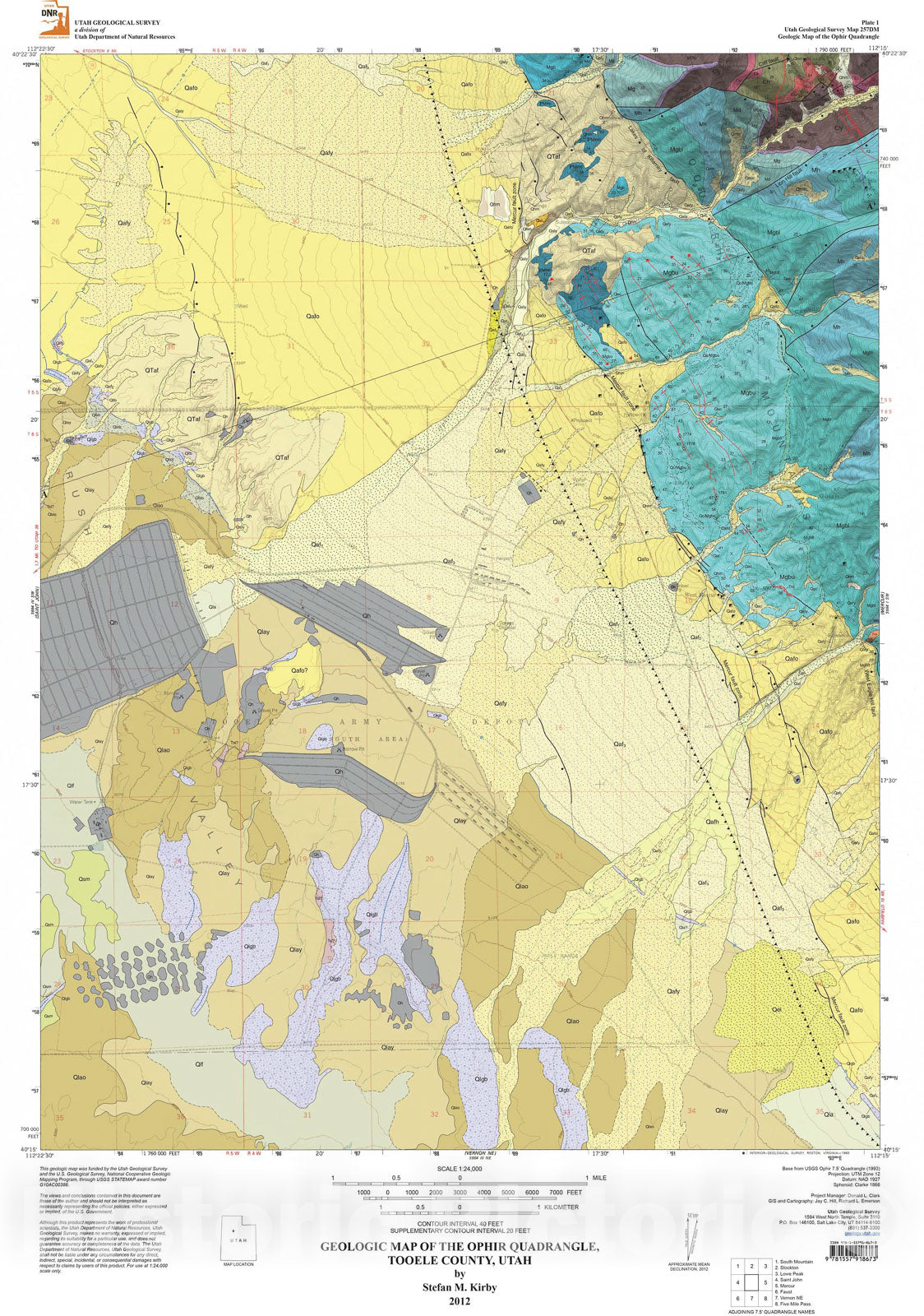 Map : Geologic map of the Ophir quadrangle, Tooele County, Utah, 2013 Cartography Wall Art :