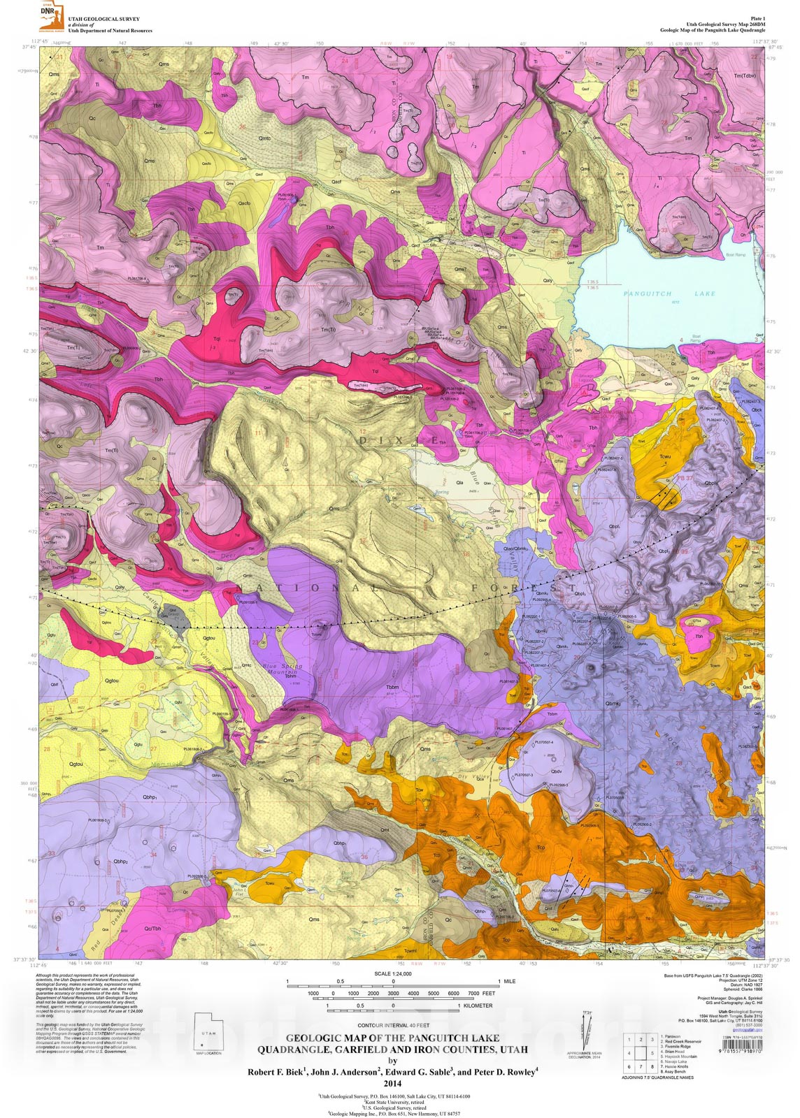 Map : Geologic map of the Panguitch Lake quadrangle, Garfield and Iron Counties, Utah, 2014 Cartography Wall Art :