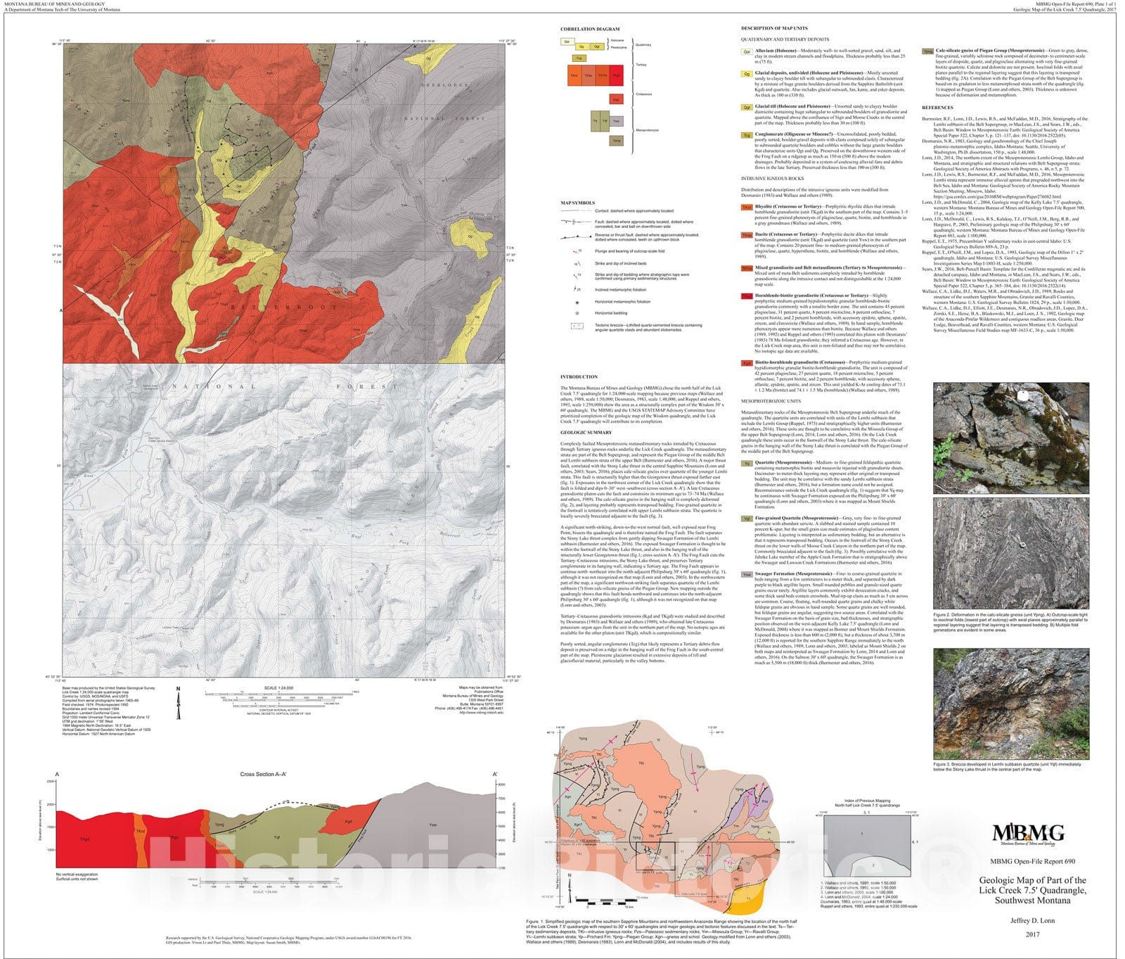 Map : Geologic map of part of the Lick Creek 7.5' quadrangle, southwest Montana, 2017 Cartography Wall Art :